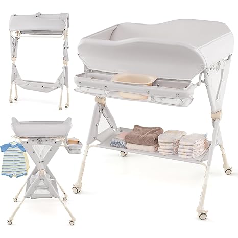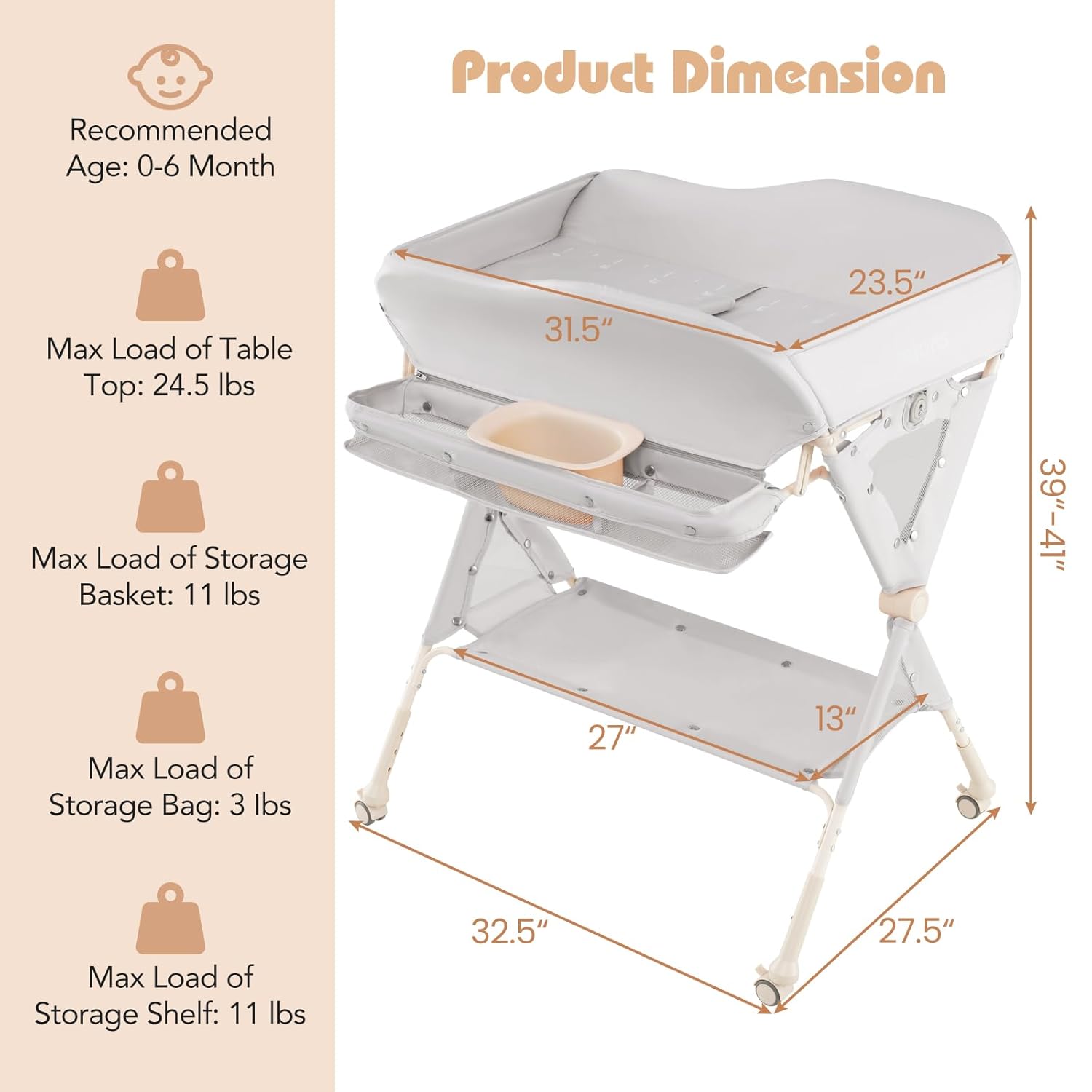 Compact Folding Design: The baby diaper station adopts a one-click folding design, which is convenient to fold and place in any corner of the room, saving space when not in use