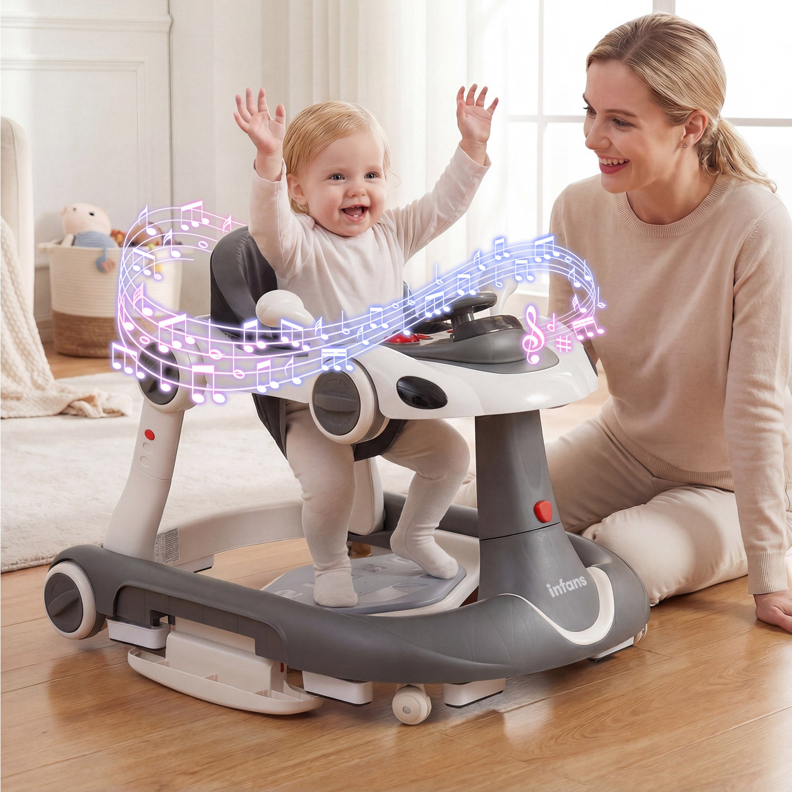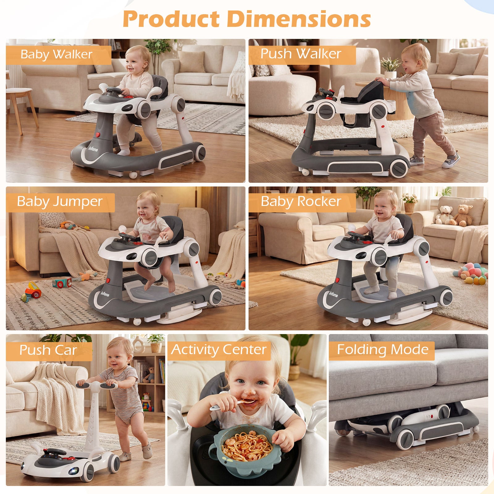 INFANS 6-in-1 Baby Walker, Converts Push Car to Bouncer, Rocker with Music, Lights, Adjustable Height & Speed, Activity Center, Canopy for 7-18 Months