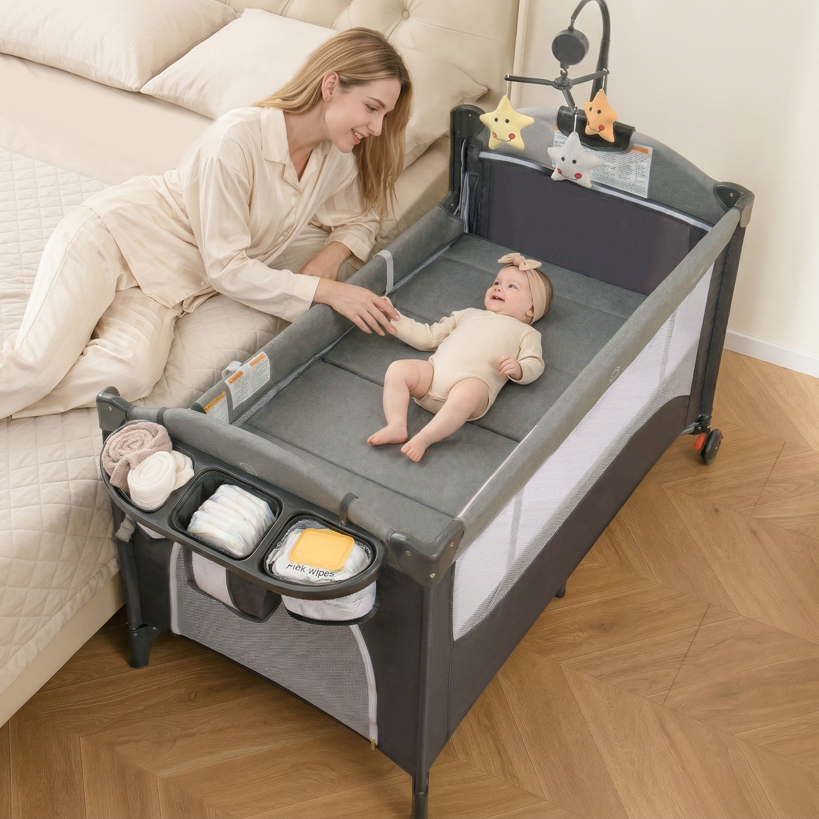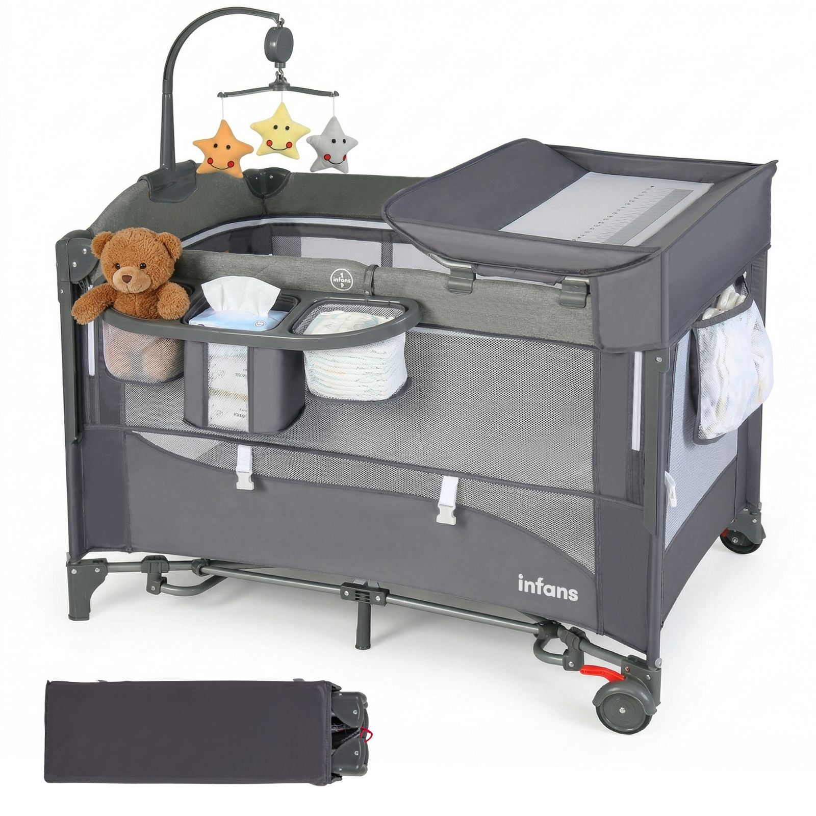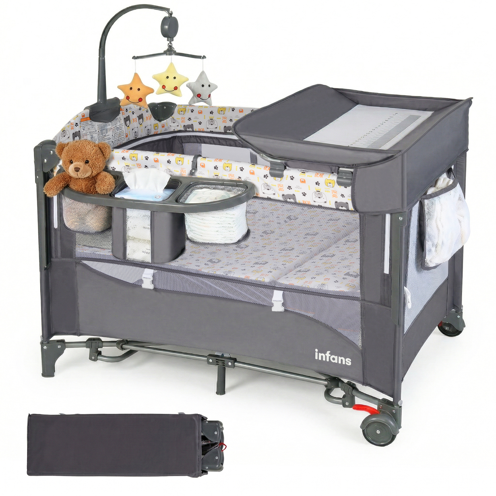 INFANS 5 in 1 Portable Playard, Larger Size Baby Bassinet Bedside Sleeper, Diaper Changer, Foldable Bedside Crib