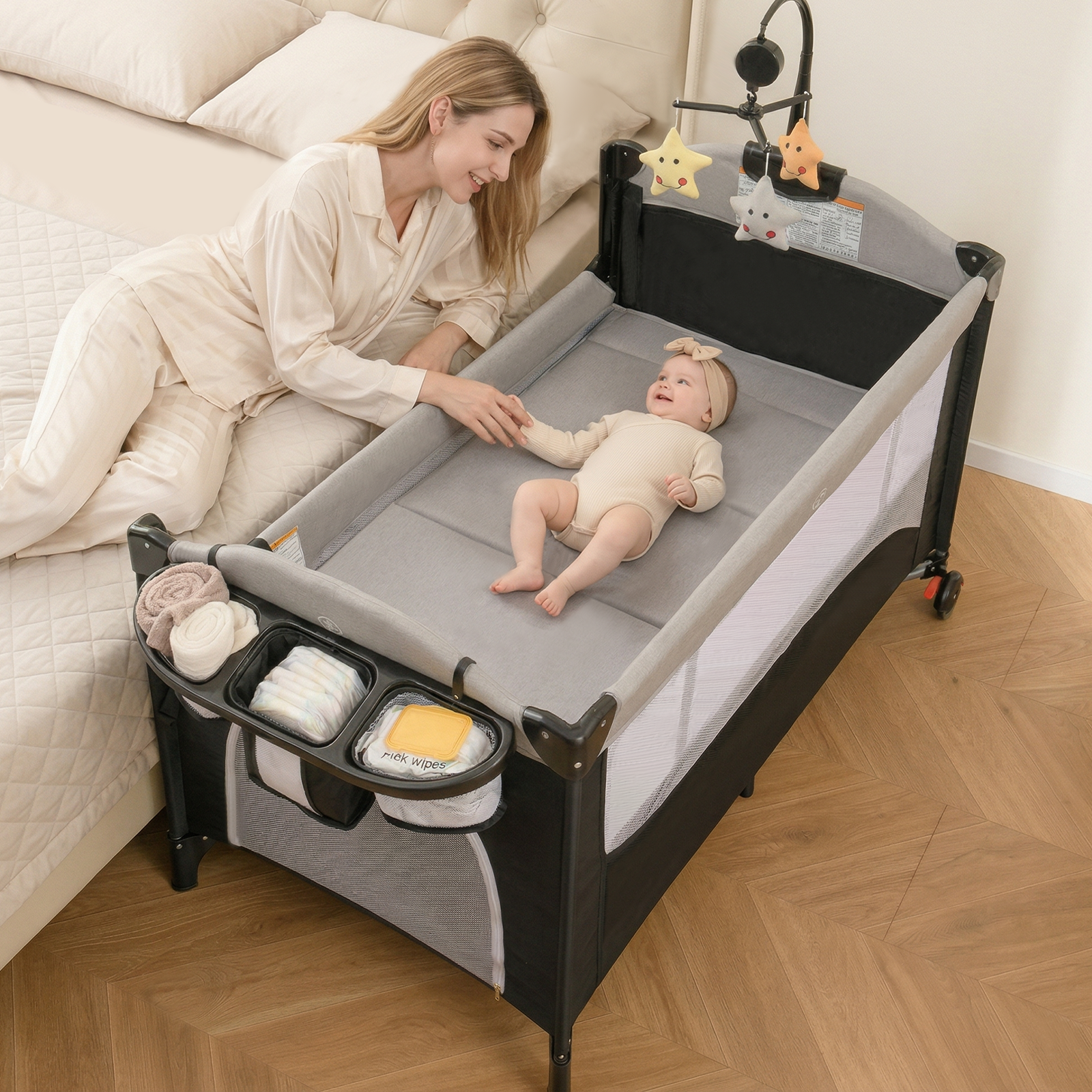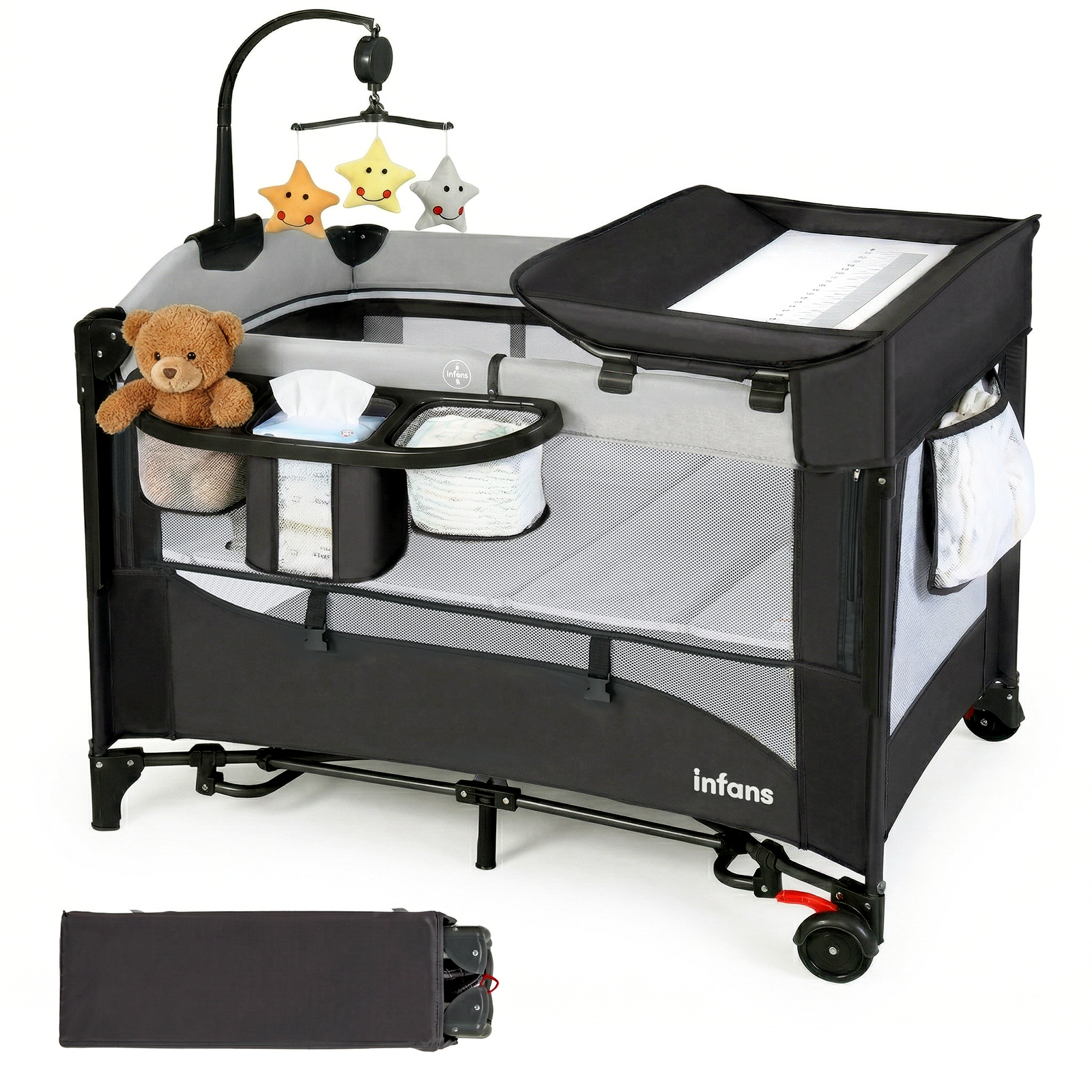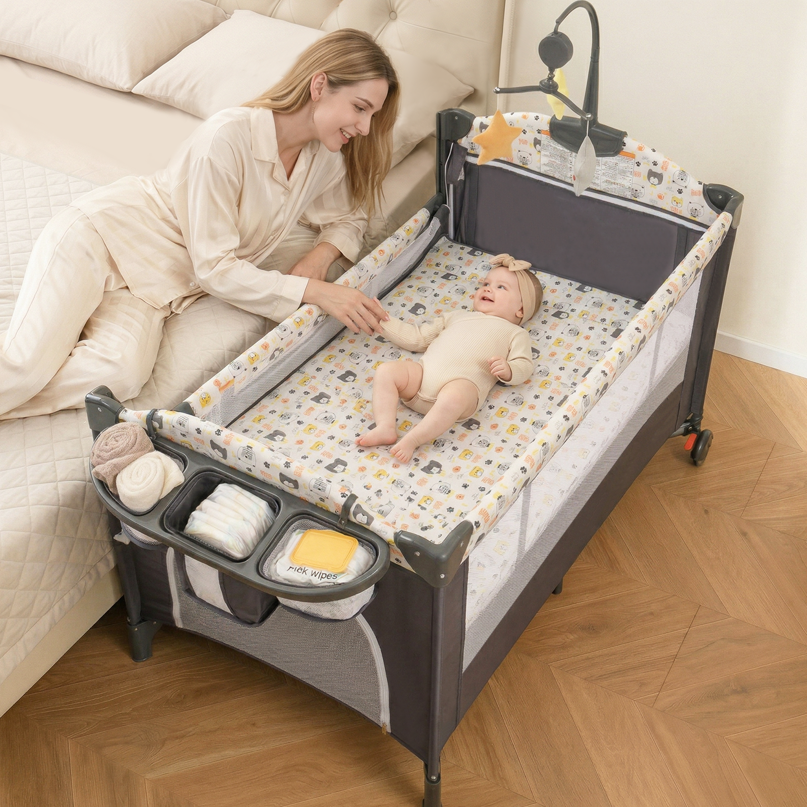 INFANS 5 in 1 Portable Playard, Larger Size Baby Bassinet Bedside Sleeper, Diaper Changer, Foldable Bedside Crib