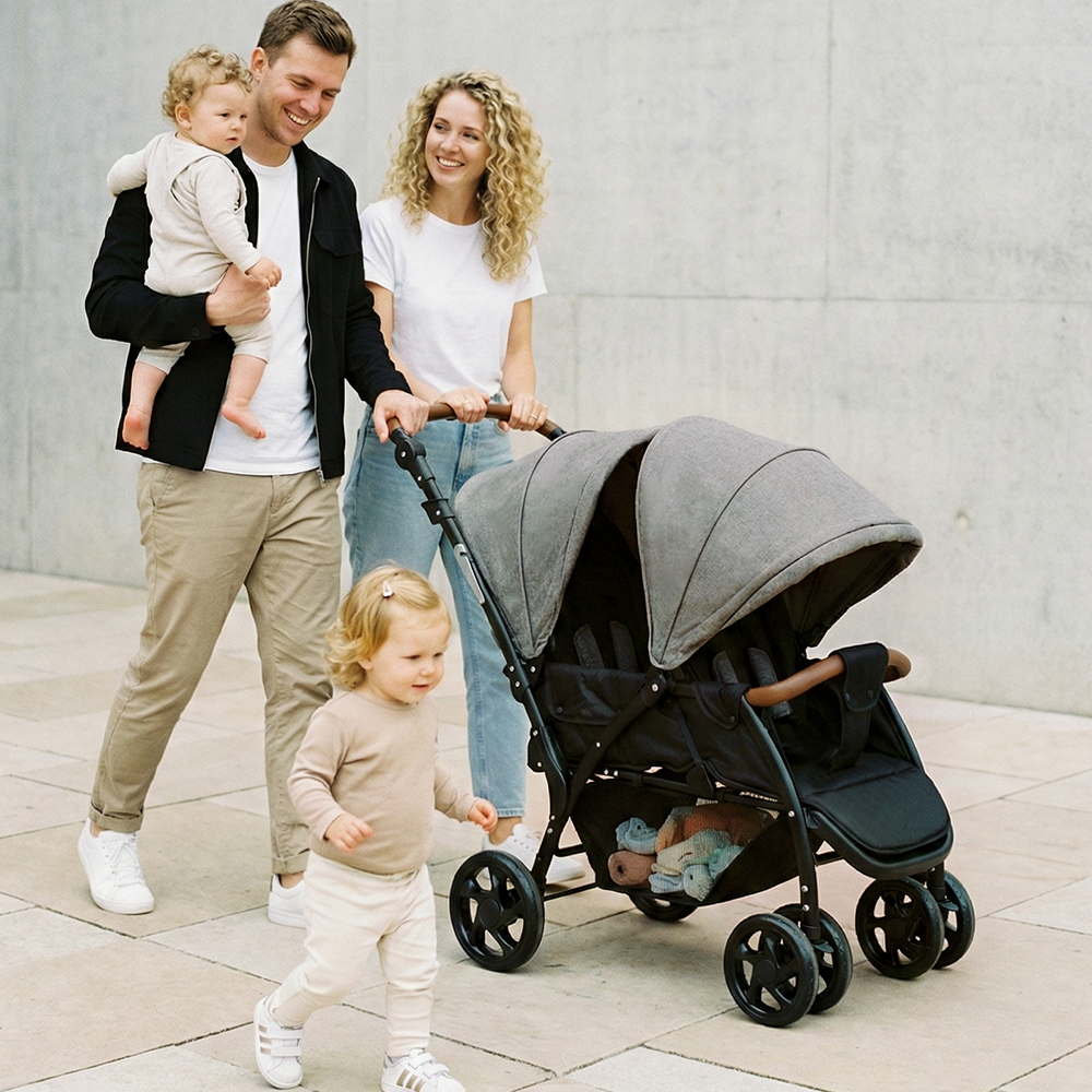 Features: Front swivel and rear wheel suspension system Accommodates newborns, toddlers, or siblings with ease Protects babies from sun exposure during outdoor strolls Equipped with secure 5-point harness for added protection Convenient folding mechanism for easy storage and transport Spacious basket for storing baby essentials and personal items Multiple recline positions for baby's comfort Sturdy frame ensures long-lasting performance and reliability Compact fold design fits easily in car trunks or closets Modern aesthetics for a fashionable and functional stroller