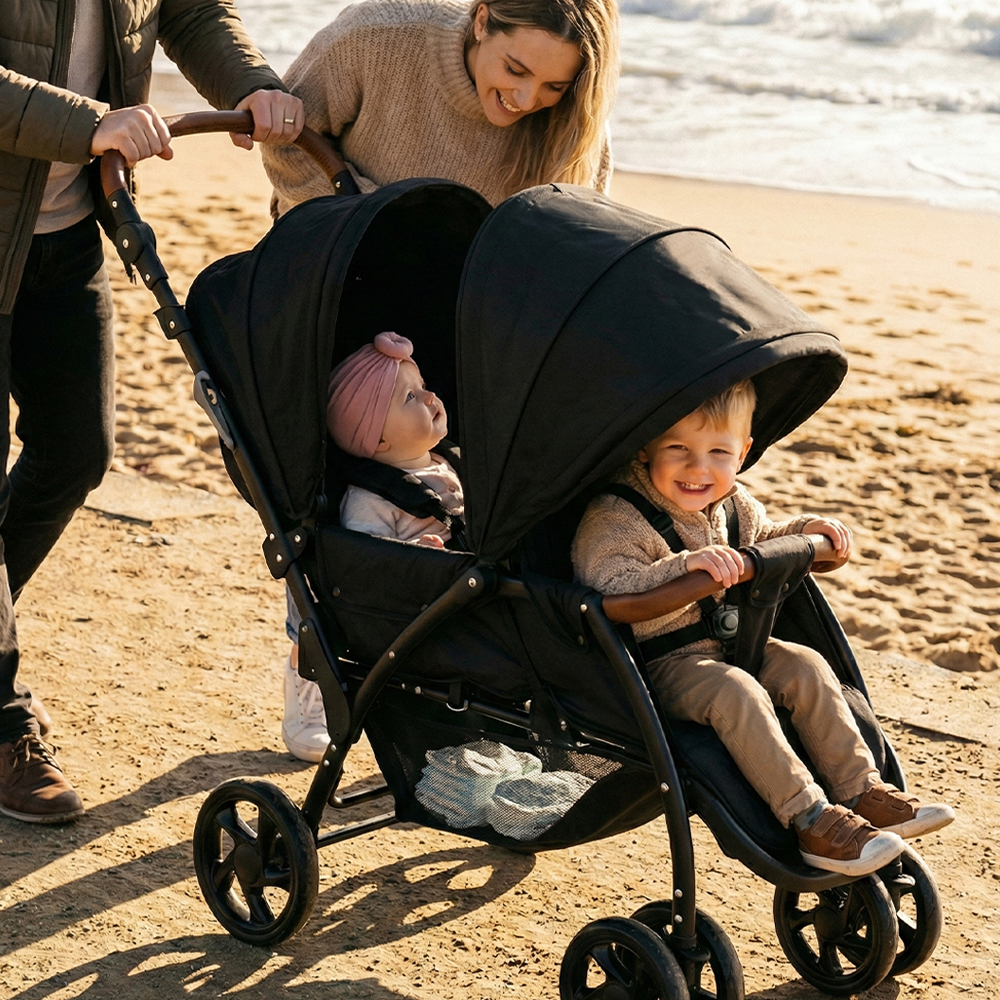 Customized Comfort Features: Adjust the handlebar angle for a comfortable pushing experience and customize the footrest to adapt to child's leg growth over time. This twin stroller is designed to provide comfort and convenience for both parents and children.