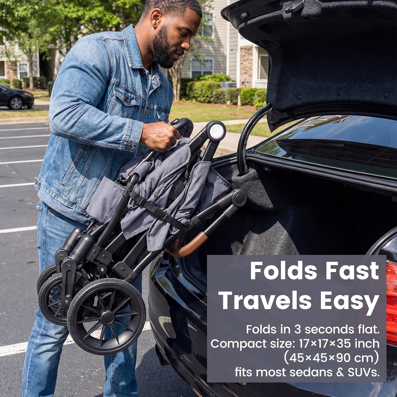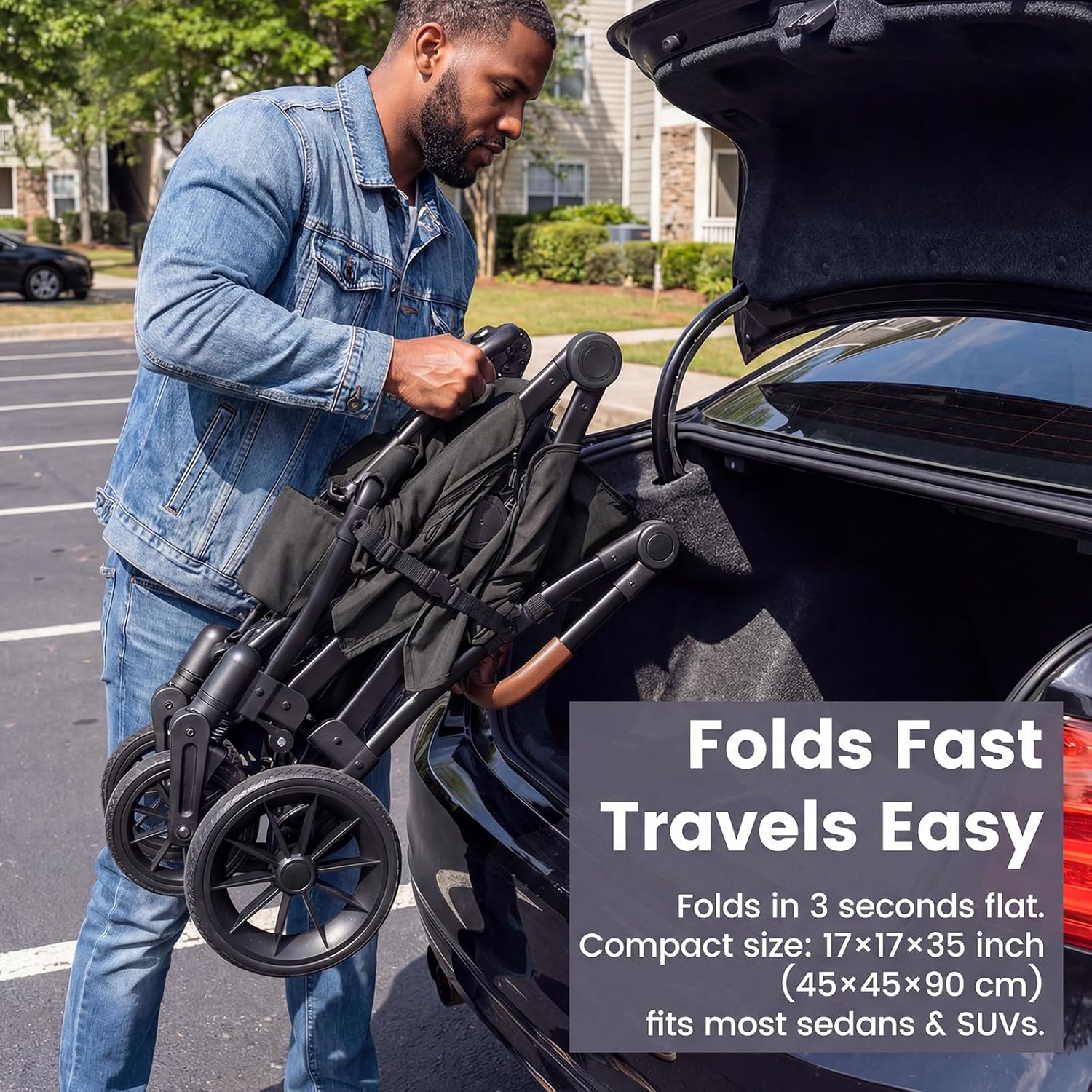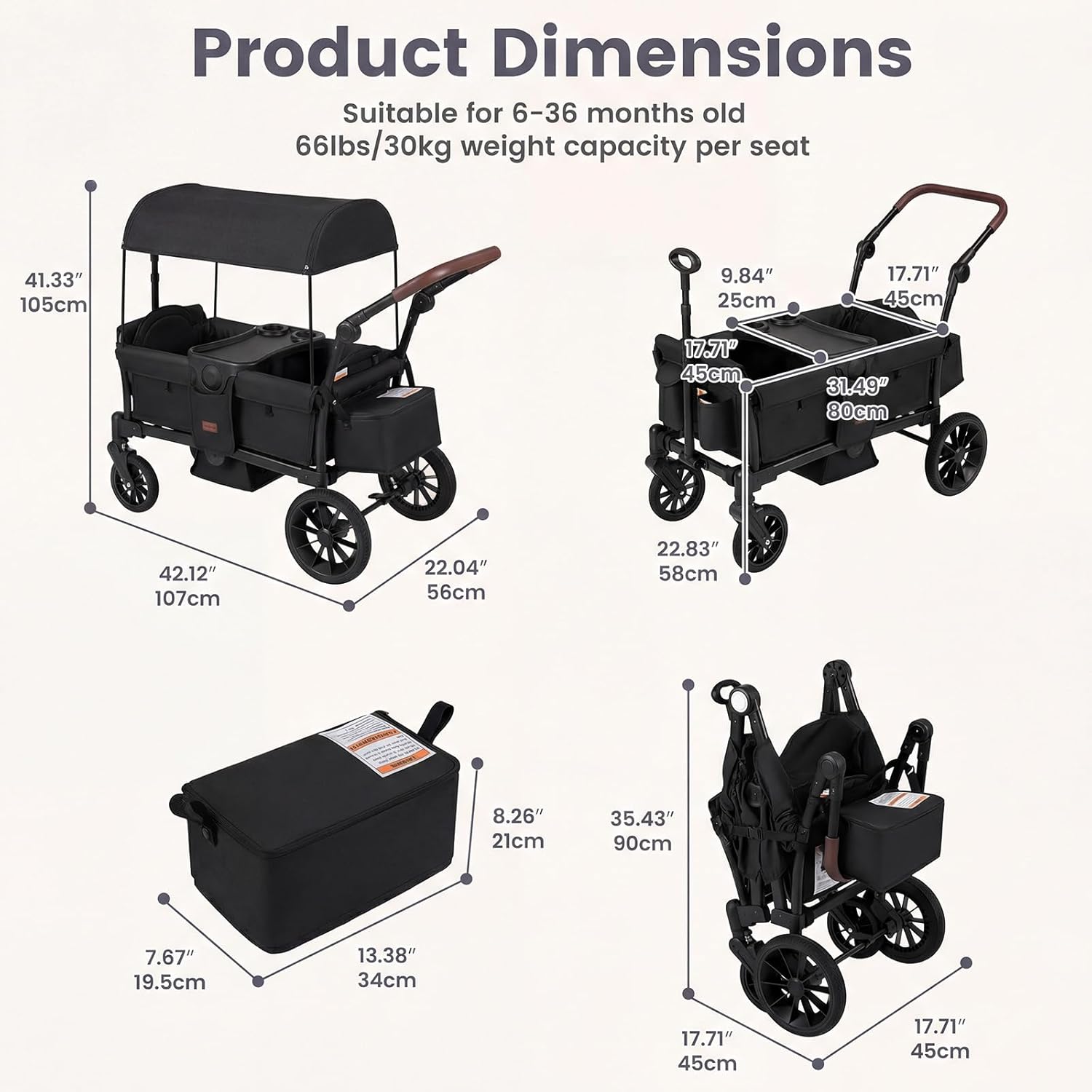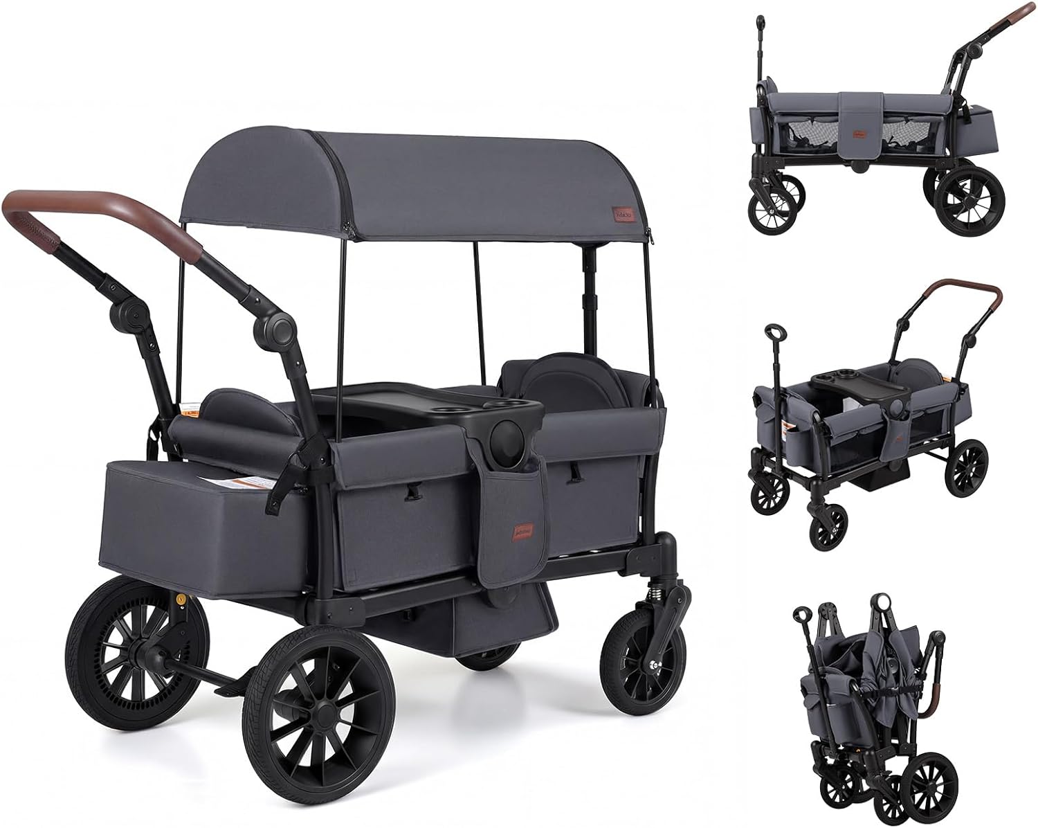 Lightweight & Quick-Folding: Weighing only 33 lbs (15 kg), this wagon stroller folds flat in just 3 seconds to a compact size of 17×17×35 inch(45×45×90 cm) that fits most cars and SUVs, making travel and home storage simple