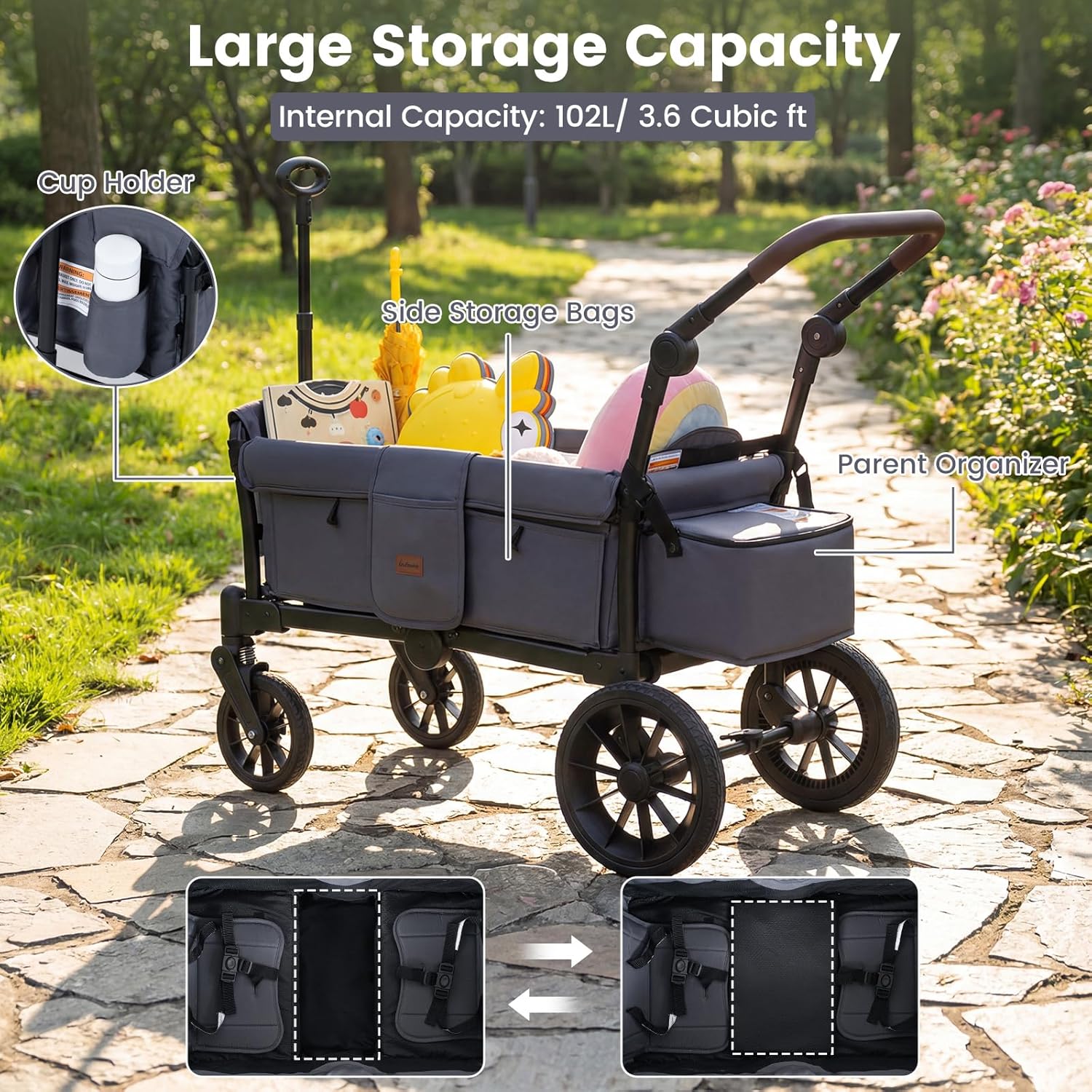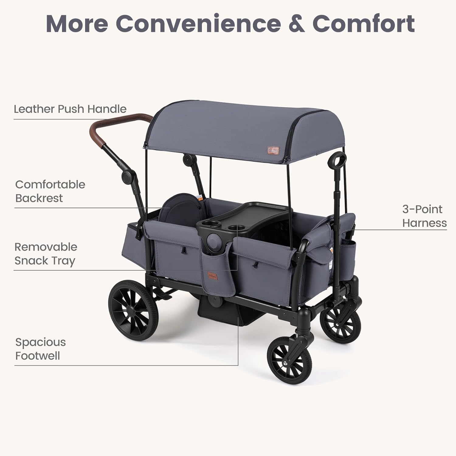 Versatile Kids Wagon: This INFANS baby wagon features a shared deep footwell for comfortable seating. Fold the footwell up to create a cozy nap space or convert it into a spacious wagon cart perfect for shopping and hauling gear