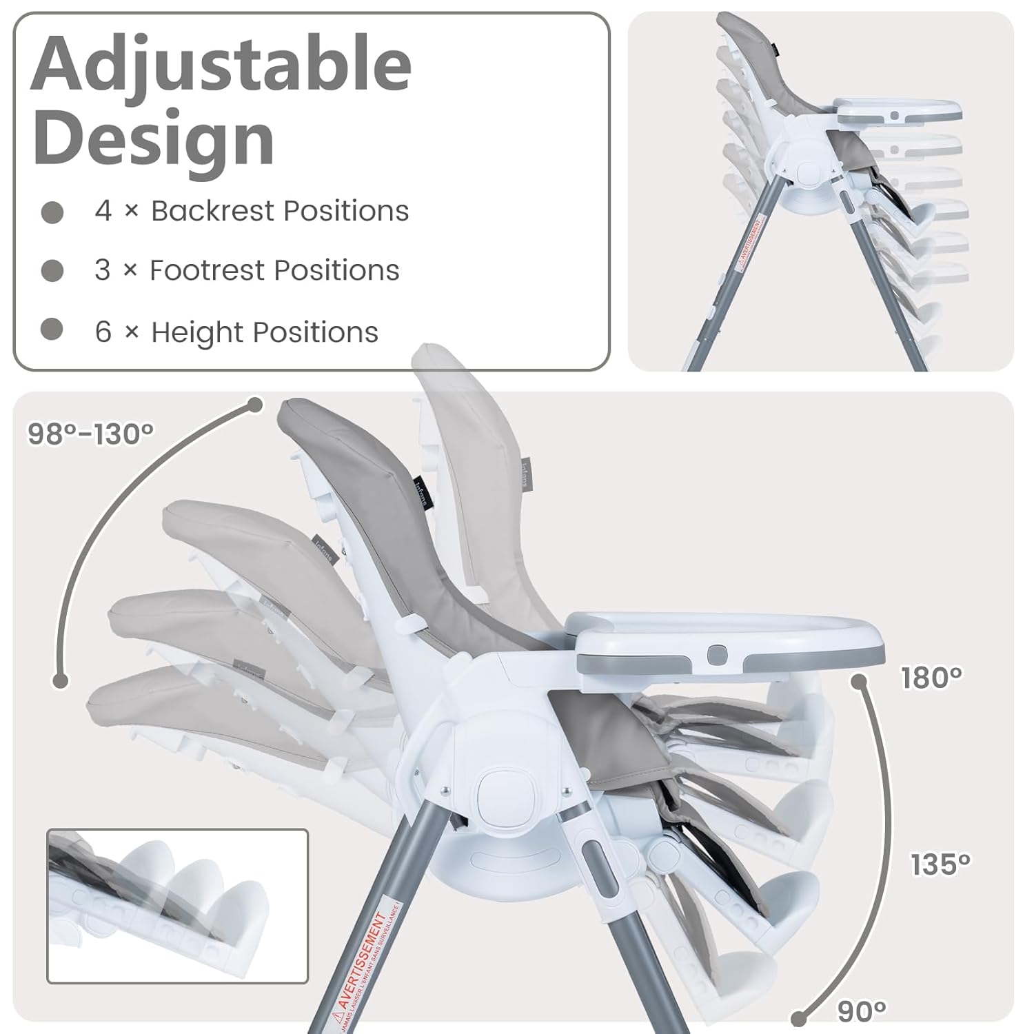 • EASY TO CLEAN WITH DETACHABLE DESIGN: Cleanliness has always been a primary concern with baby products. Our baby high chairs come with removable trays and cushions for easy cleaning and maintenance after daily use. The removable PP top tray is also dishwasher safe. The PU leather cushion is waterproof and all you need to do is wipe the stain with a clean cloth.
