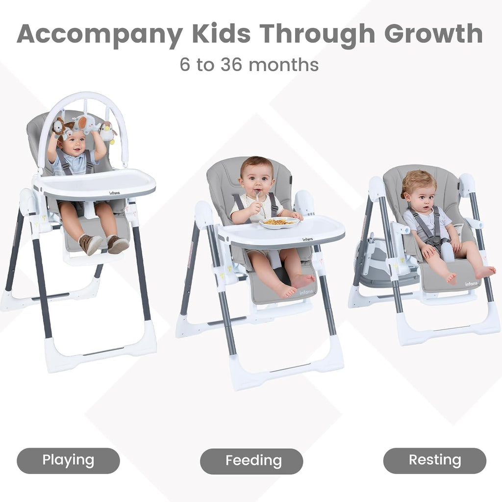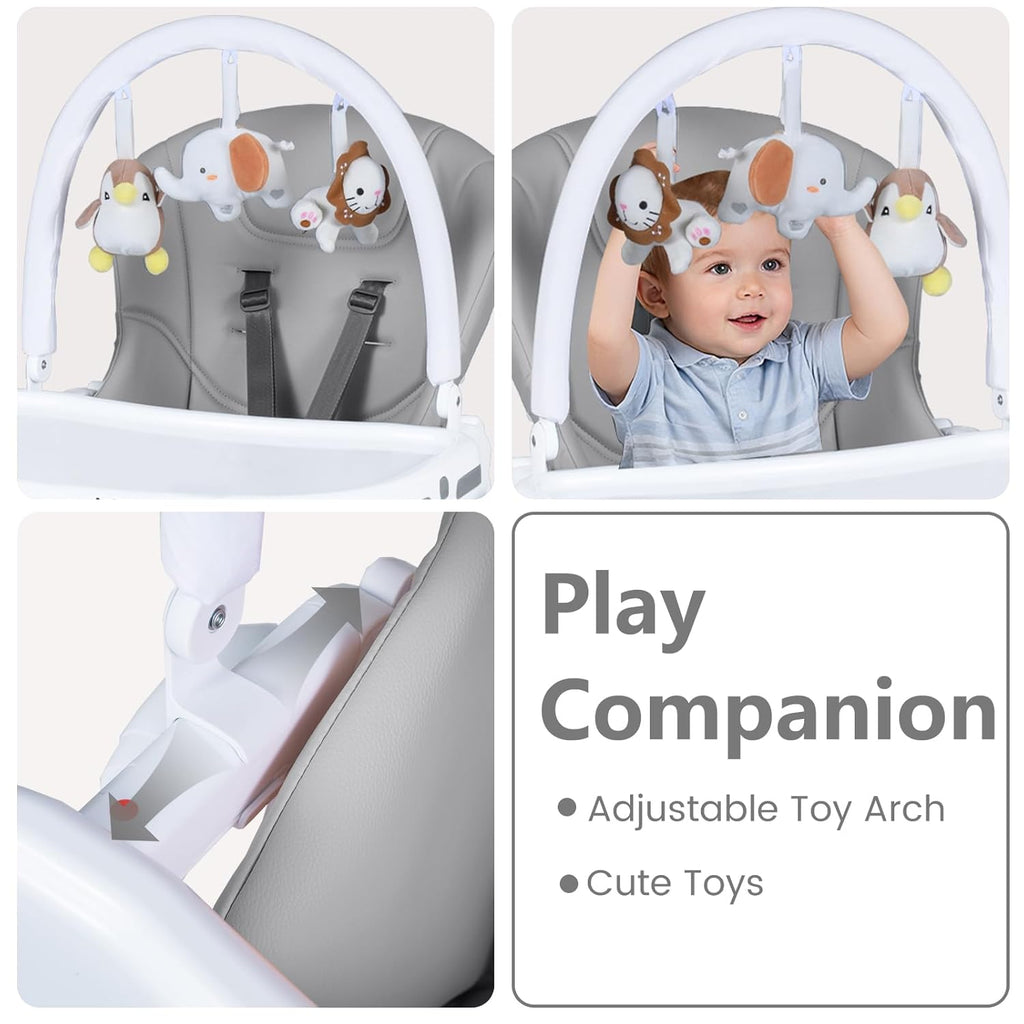 • MULTI-PURPOSE HIGH CHAIR: Our baby high chair has multiple mode transformations and can be used as a dining chair, a play chair, a feeding chair or even a toddler chair (minus the tray). There are also detachable toys for added fun,suitable for 0-5 year of age.