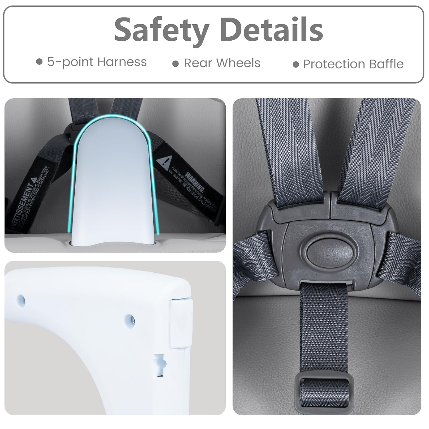 • SAFE & STABLE STRUCTURE: Our high chair is a pyramid structure with a durable iron pipe as the main structure to provide stable protection against rollover caused by playing or external forces. The strong and wide base improves stability. At the same time, the 5-point harness and safety flap help you hold your baby in place and prevent your baby from falling out of the chair.