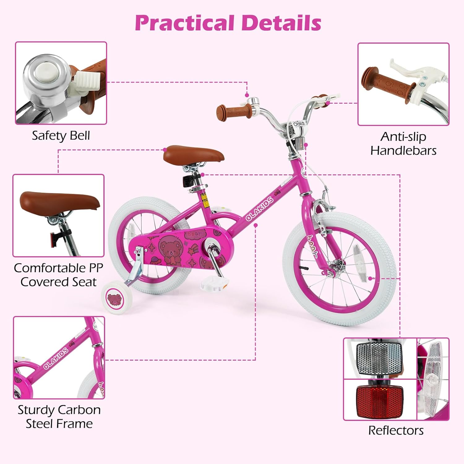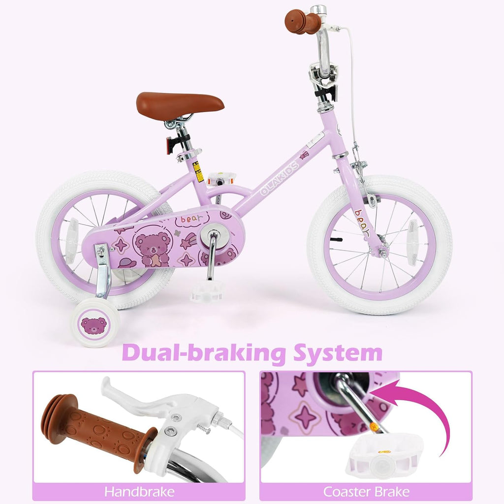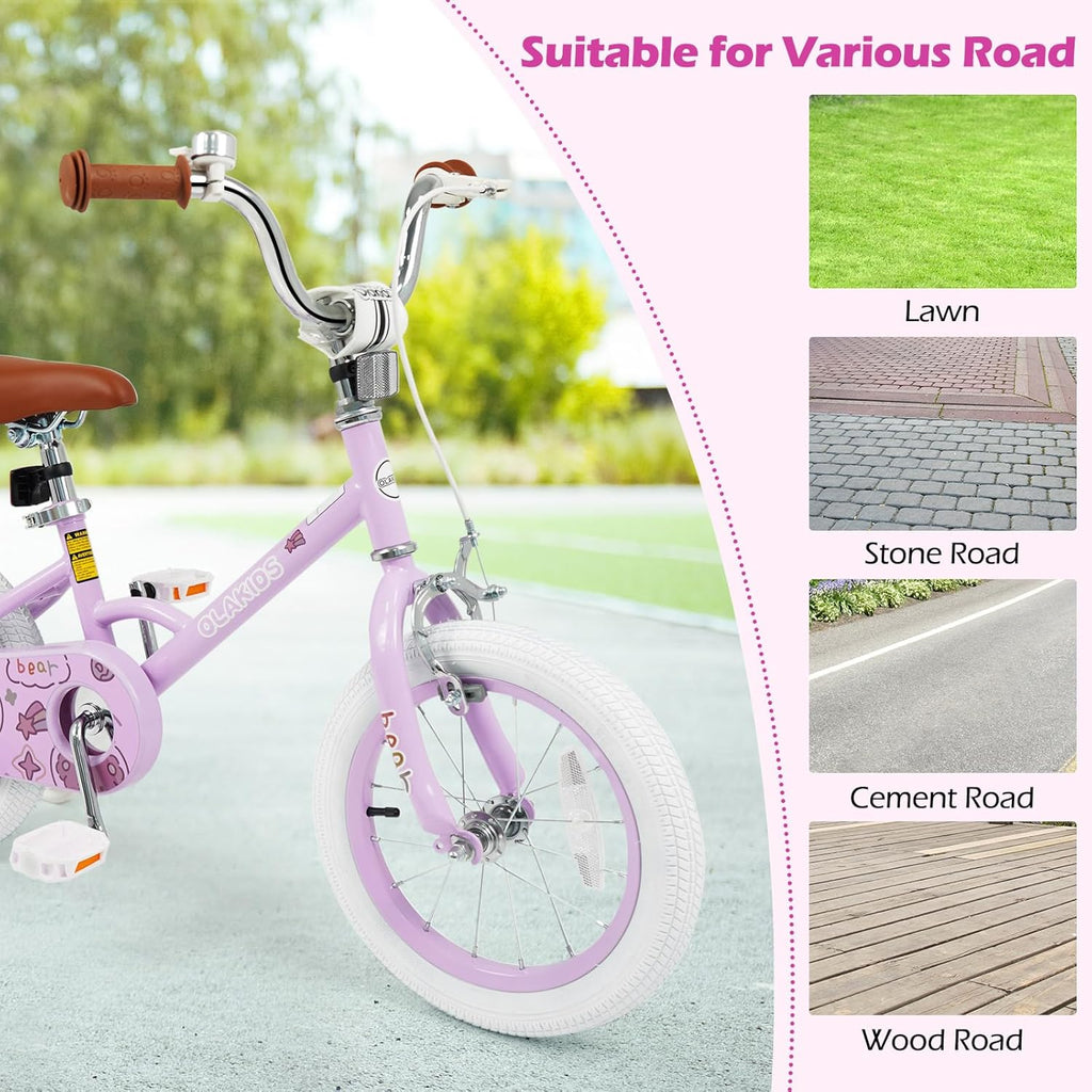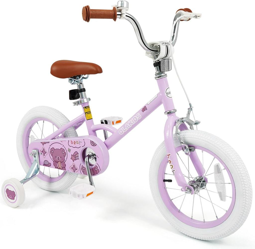 Premium and Stable Materials: The frame is made of high-quality carbon steel, capable of daily use. The girls bike is paired with a comfortable foam PP seat and TRP anti-slip training wheels to enhance riding comfortable and stability. The wide rubber tires offer strong grip and can easily handle various common terrains