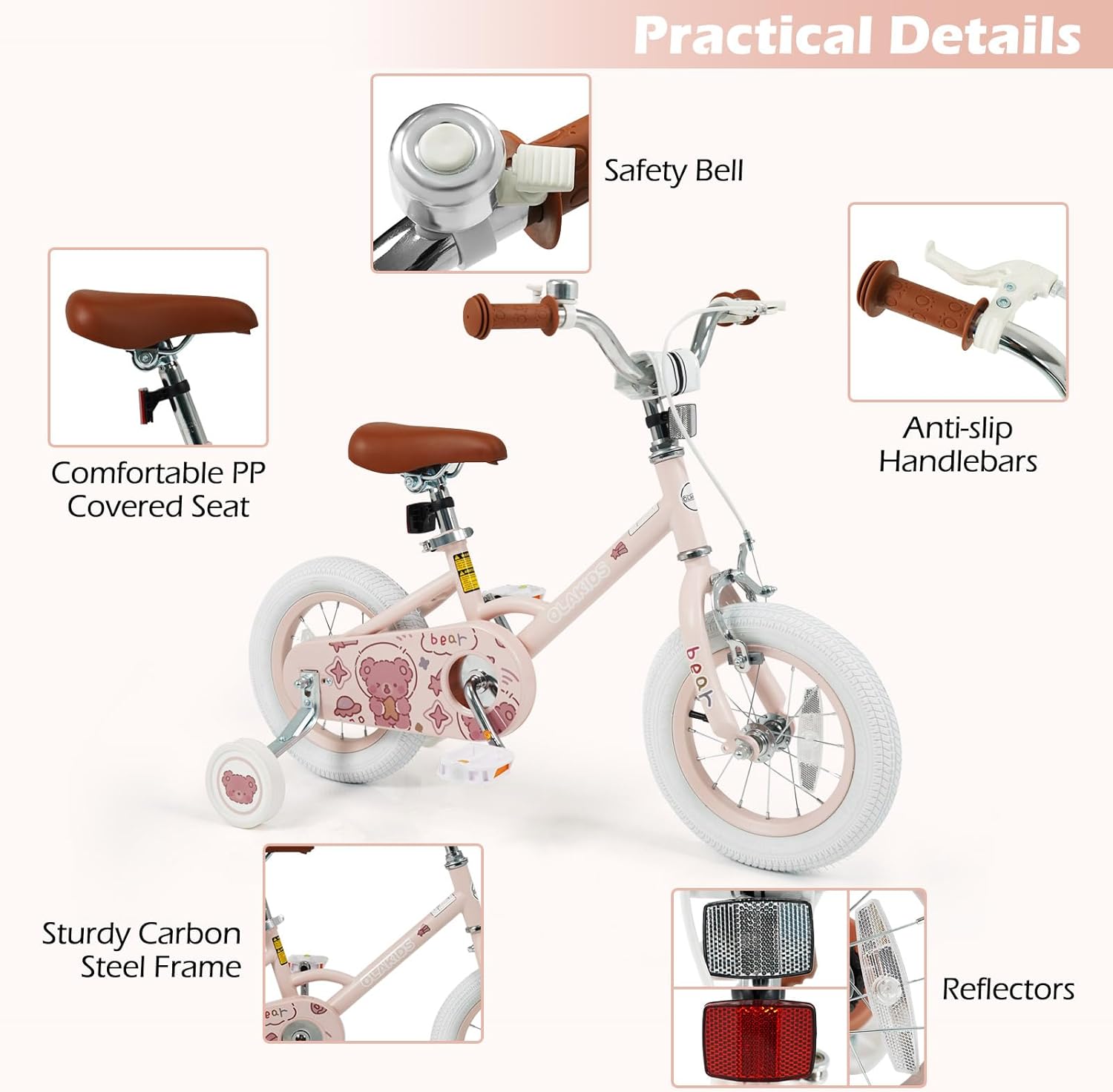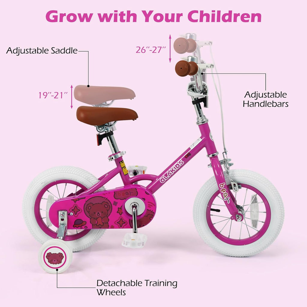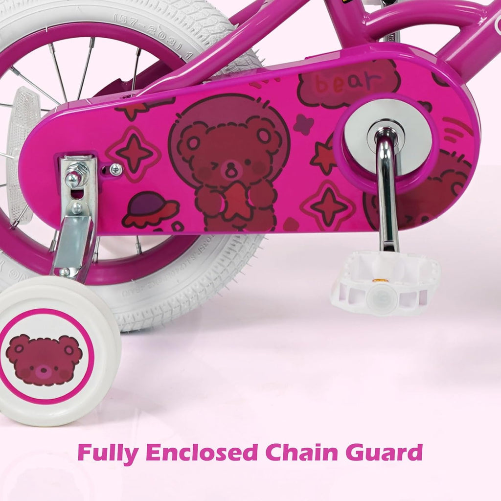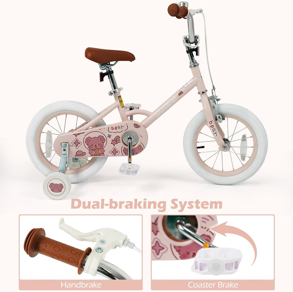 INFANS Kids Bike, 12 14 16 18 Inch Bear Themed Toddlers Bike with Training Wheels Adjustable Seat Handlebar Coaster Brake and Handbrake, Children's Bicycle for Boys Girls