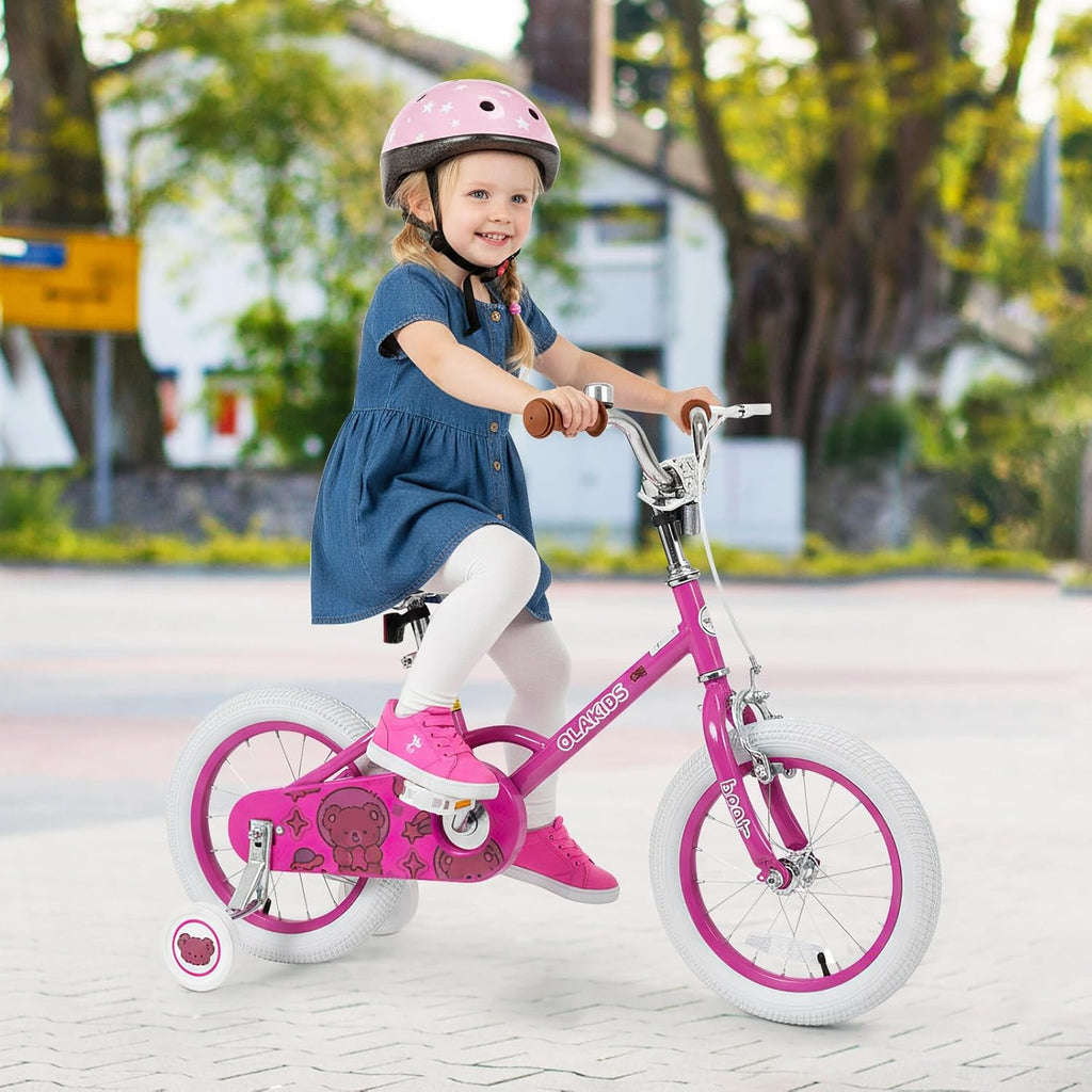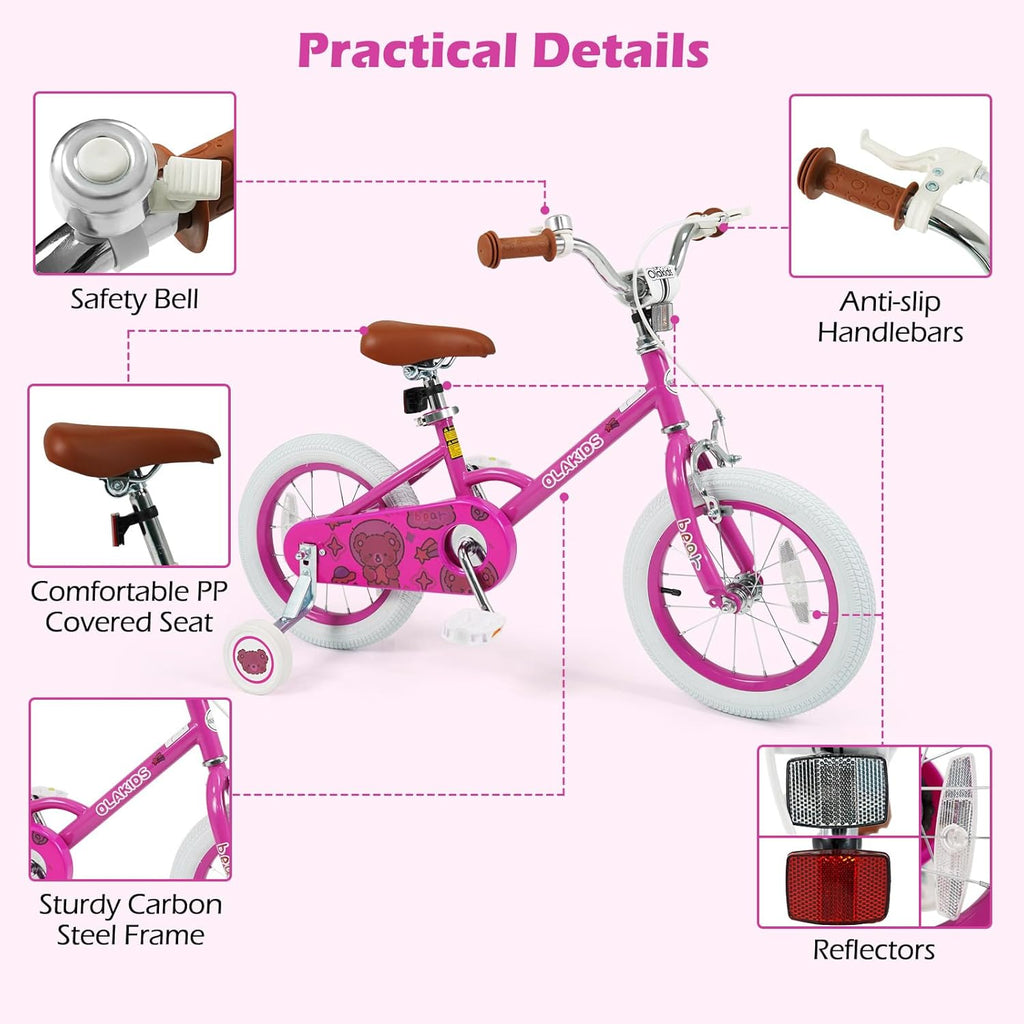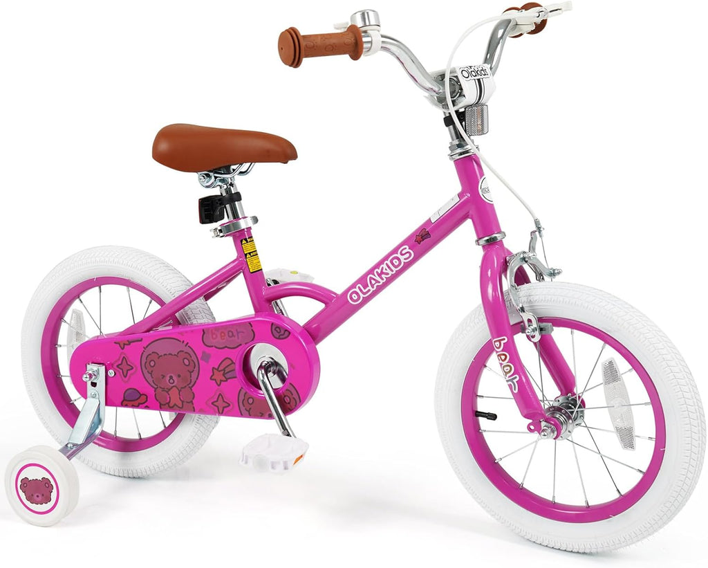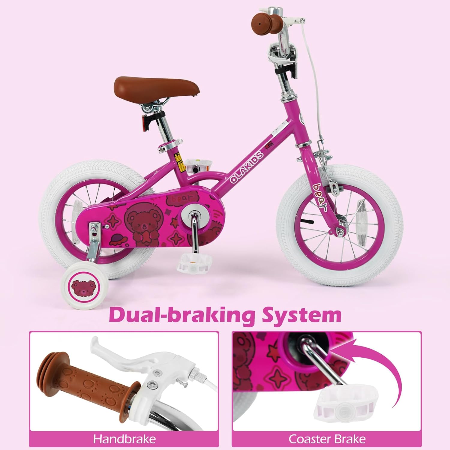 INFANS Kids Bike, 12 14 16 18 Inch Bear Themed Toddlers Bike with Training Wheels Adjustable Seat Handlebar Coaster Brake and Handbrake, Children's Bicycle for Boys Girls