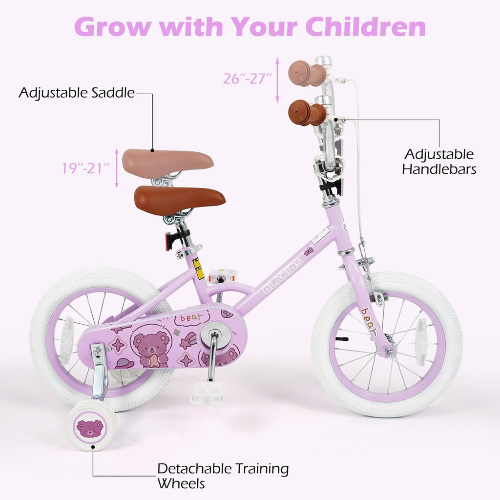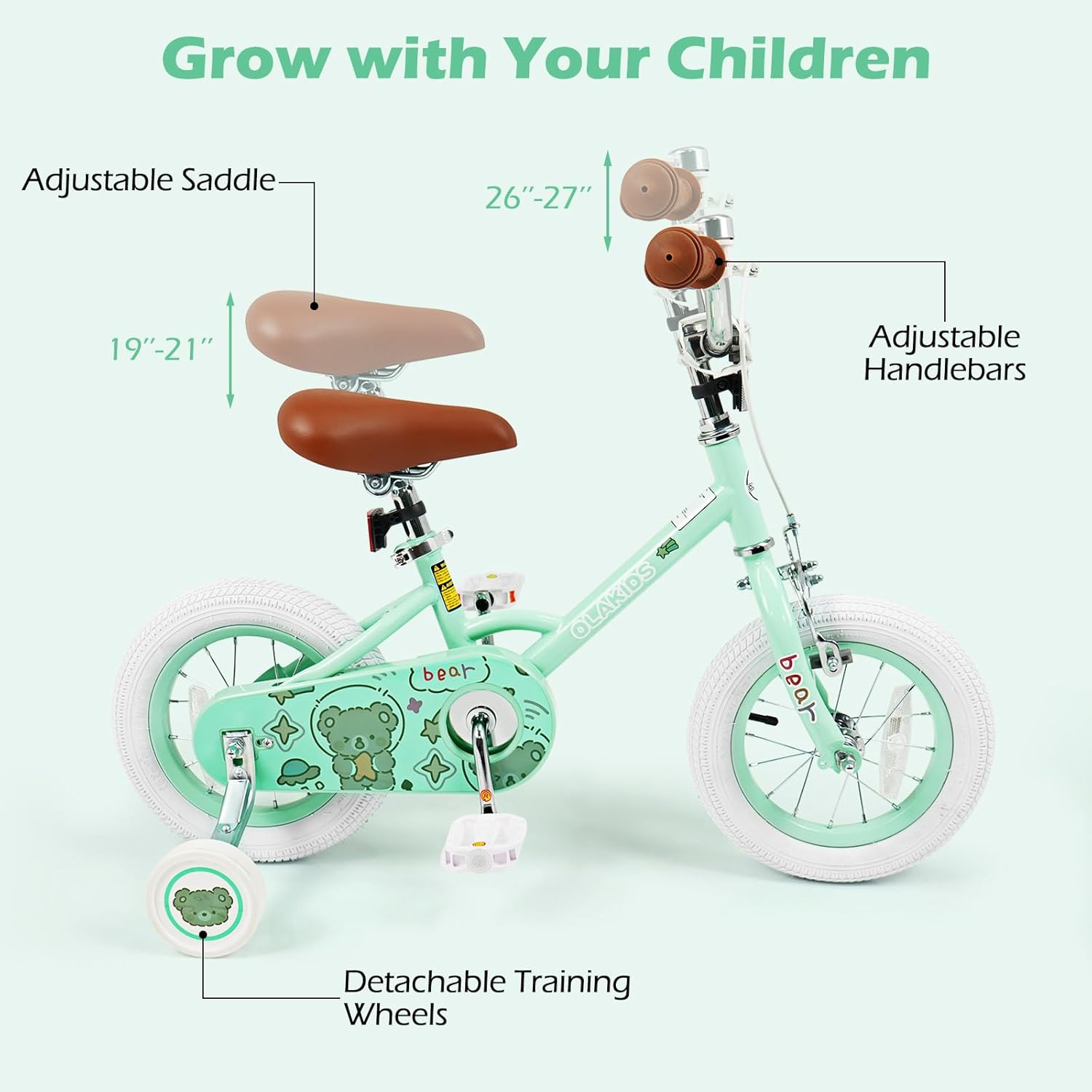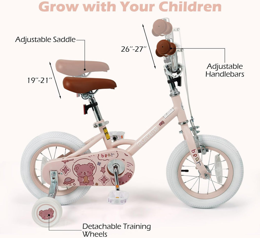 Designed Exclusively for Kids: This bike for toddlers is equipped with detachable training wheels, providing stable support for new riders. Both the handlebar and seat height can be flexibly adjusted to adapt to the child's growth over time, ensuring a comfortable riding posture at all times