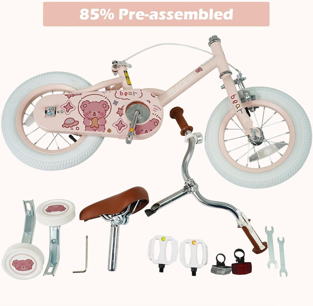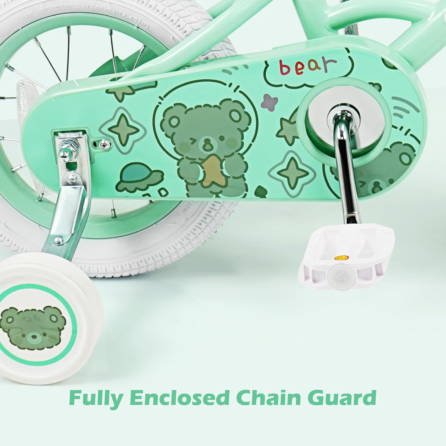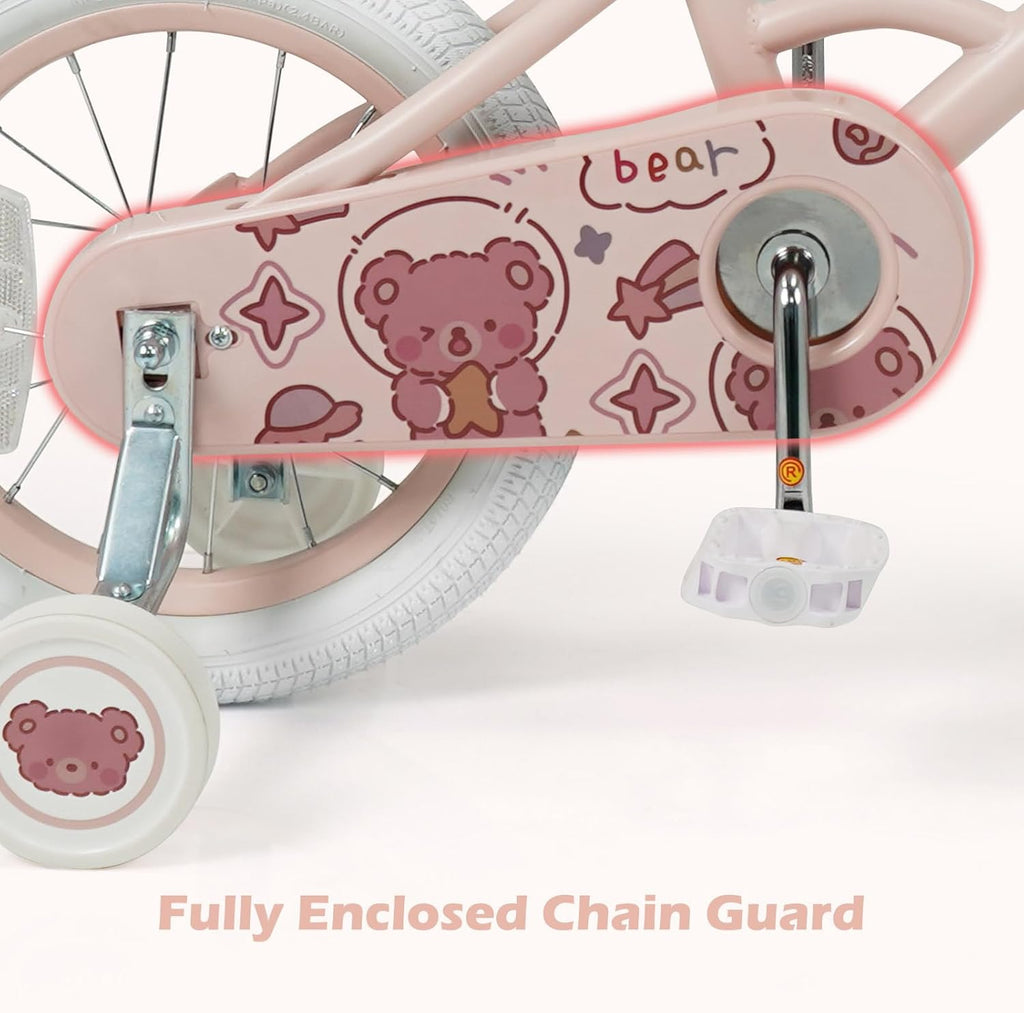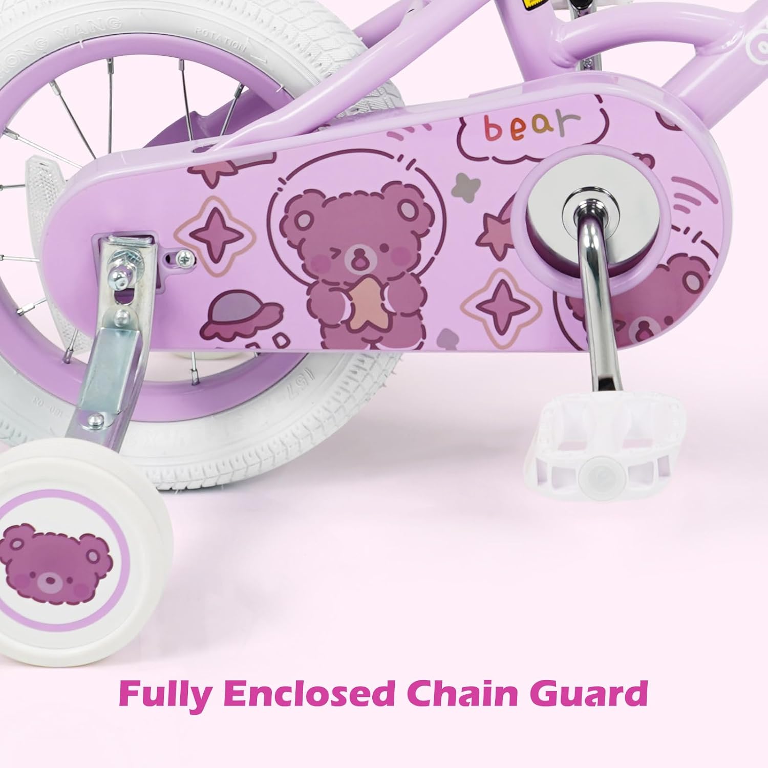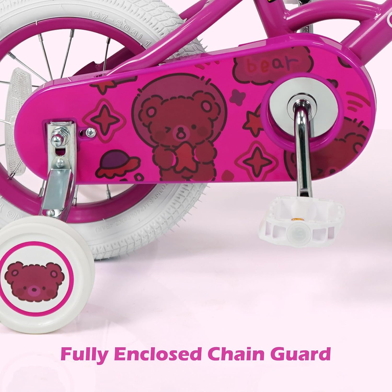 Ideal Gift for Girls: This bike for children is an excellent gift for children. This girls bike not only helps children exercise their physical strength but also improves balance control abilities. The macaron color scheme paired with little bear patterns makes this bicycle for girls fresh and cute