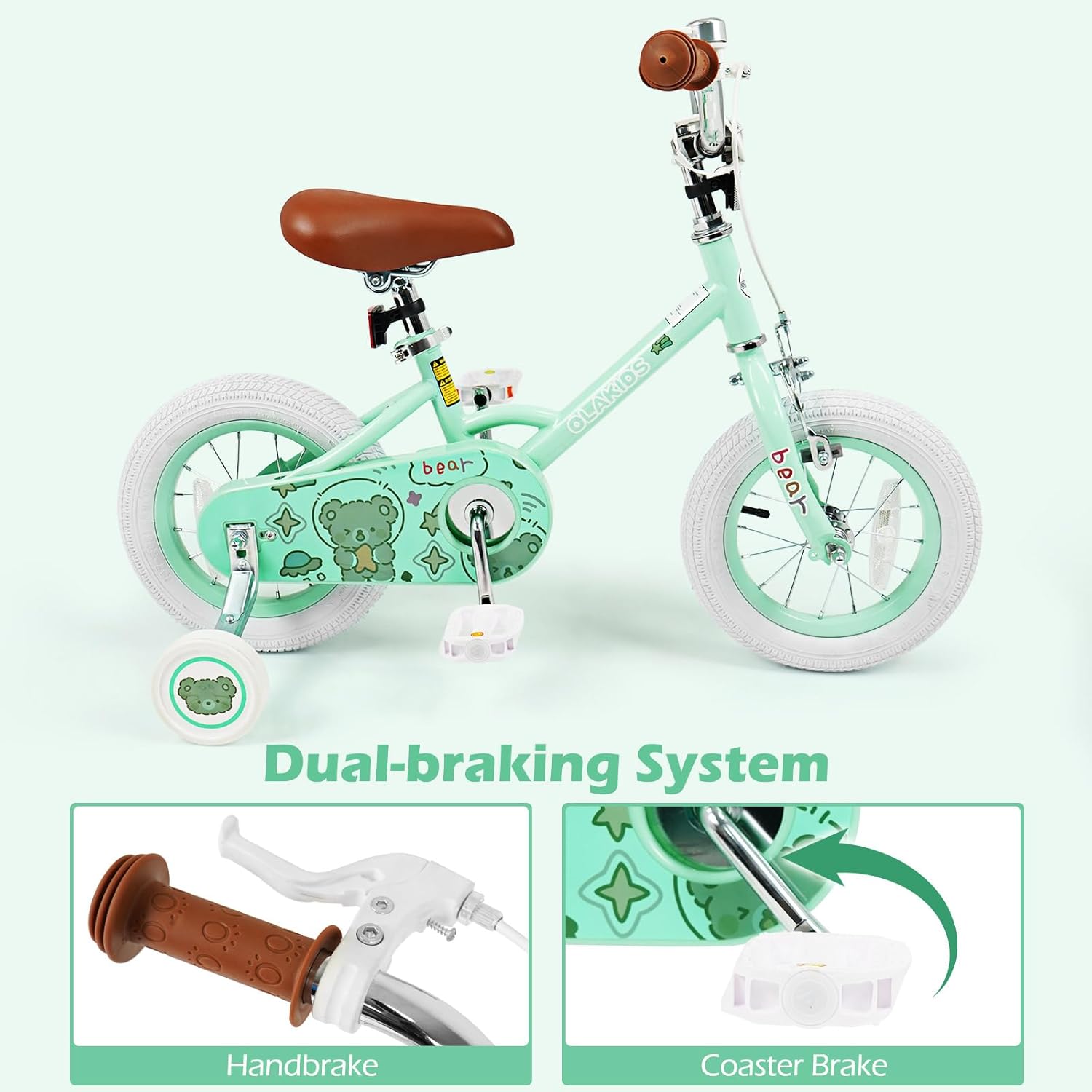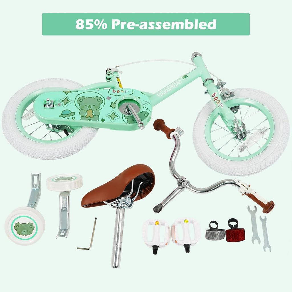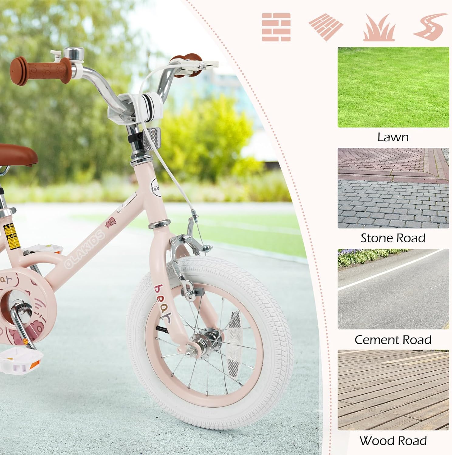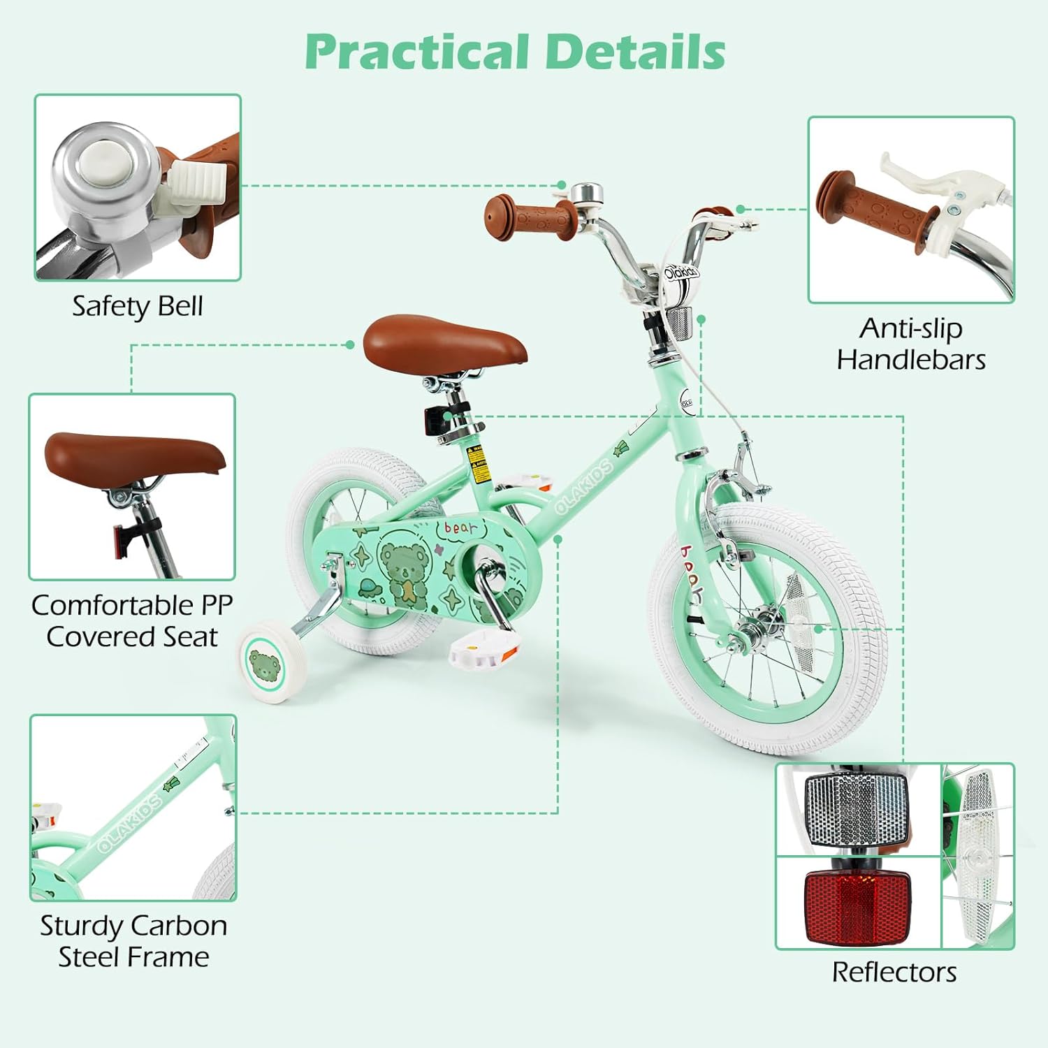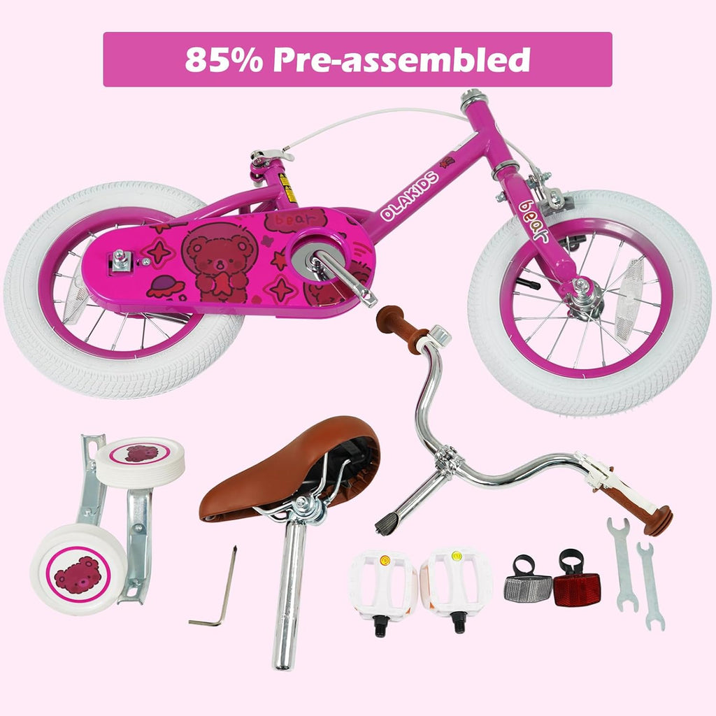 Ideal Gift for Girls: This bike for children is an excellent gift for children. This girls bike not only helps children exercise their physical strength but also improves balance control abilities. The macaron color scheme paired with little bear patterns makes this bicycle for girls fresh and cute