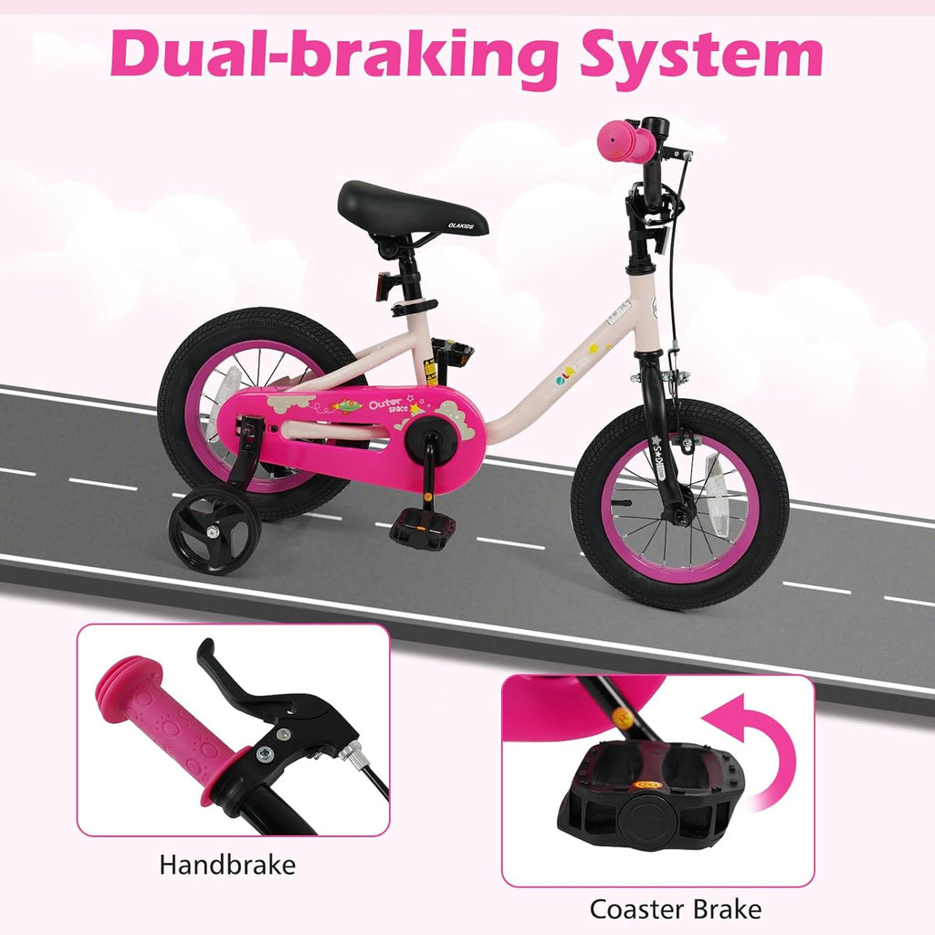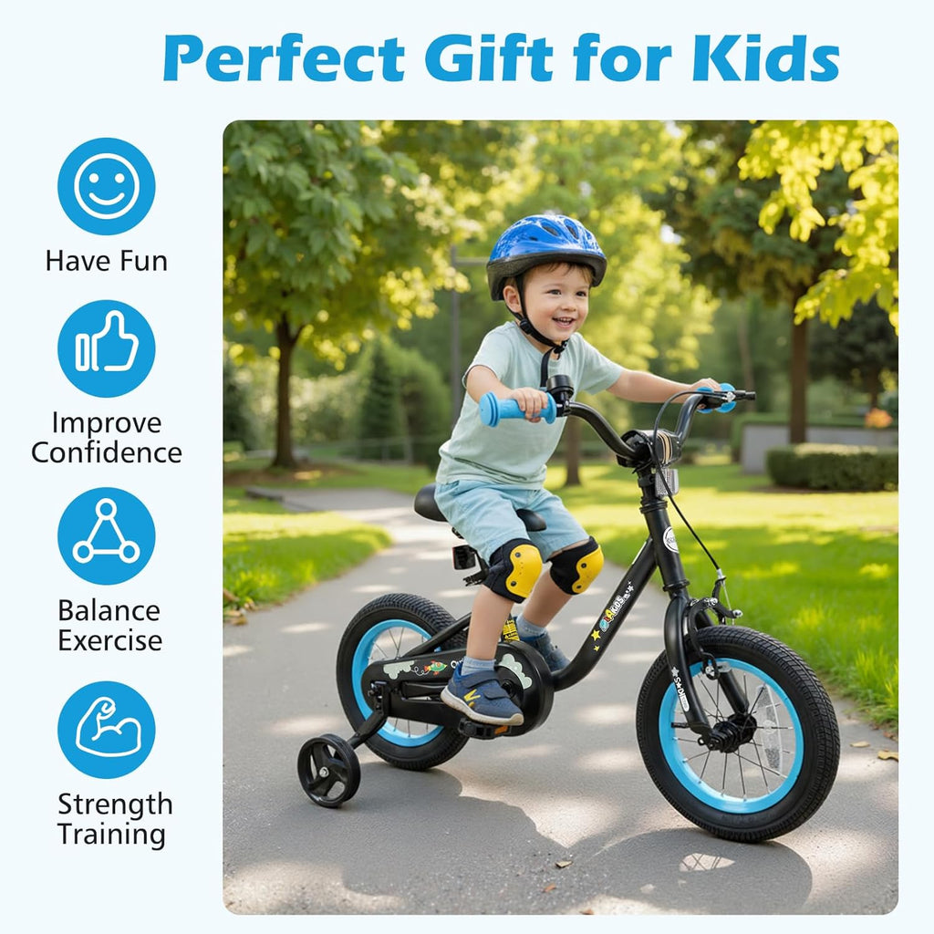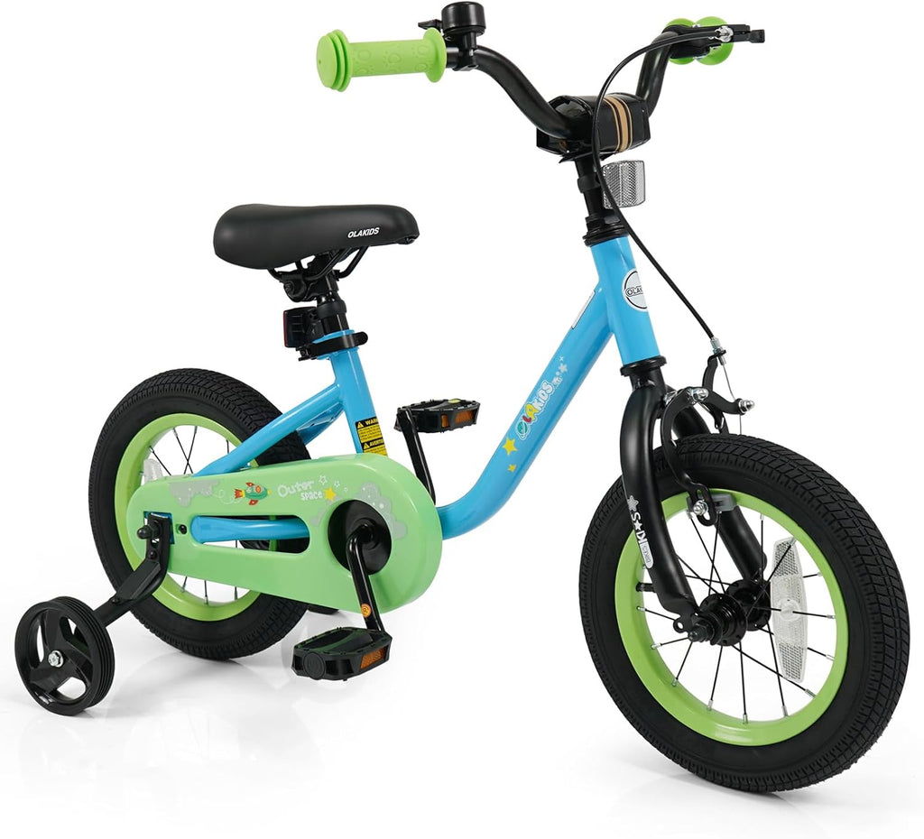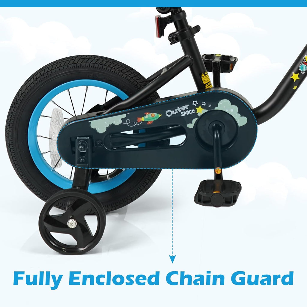 INFANS Kids Bike, 12 14 16 Inch Toddler Bicycle with Training Wheels, Space Theme Children Bike with Adjustable Seat Handlebar Handbrake Coaster Brake Safety Bell for Boys Girls 3-8