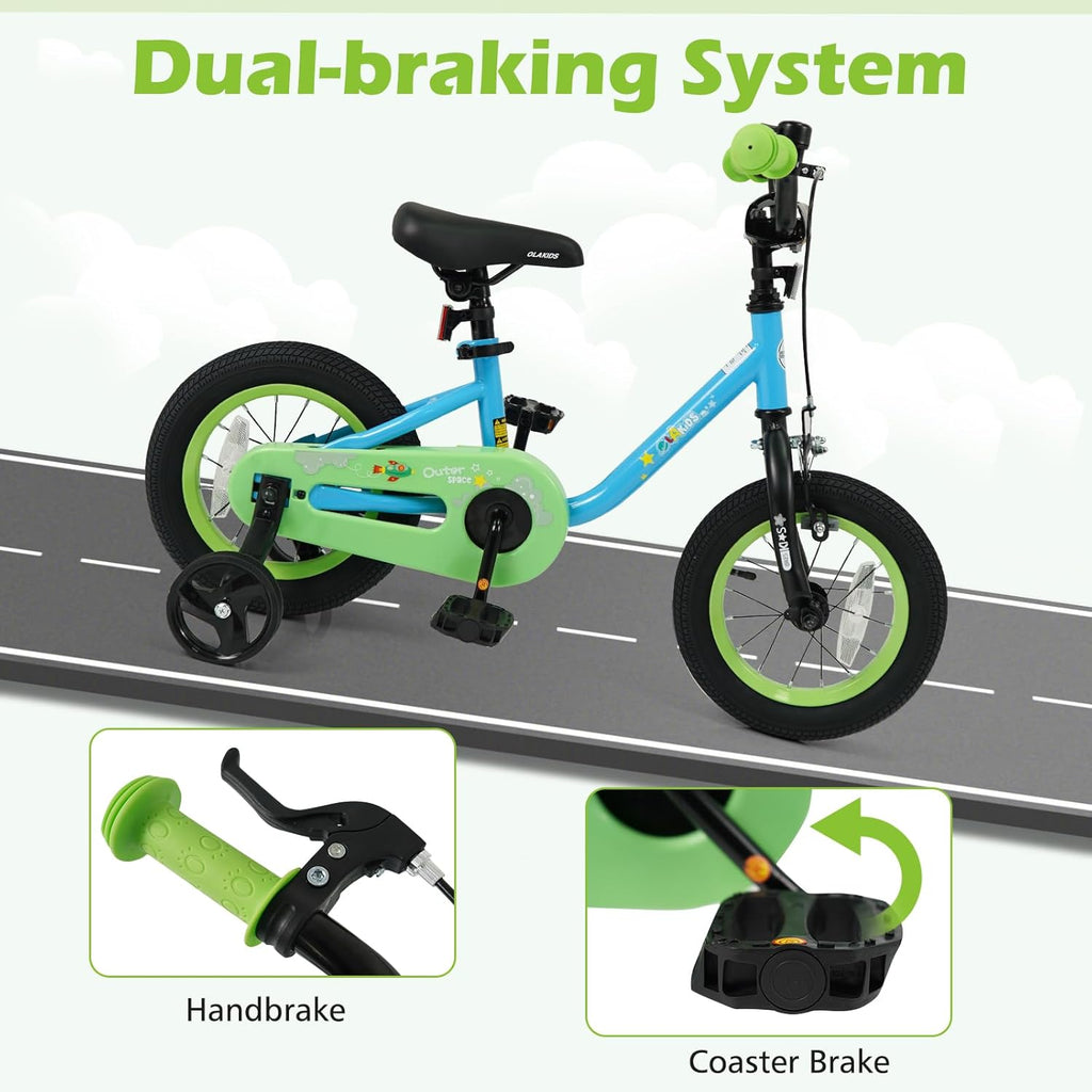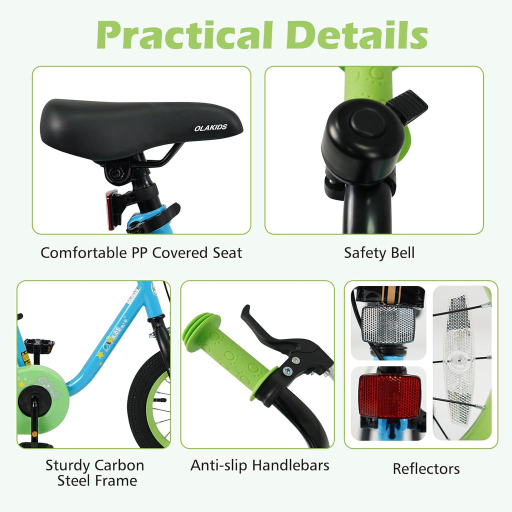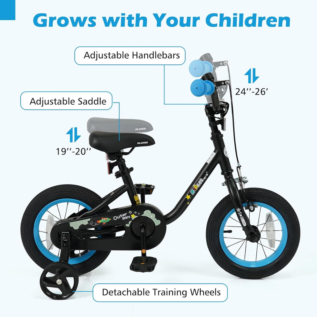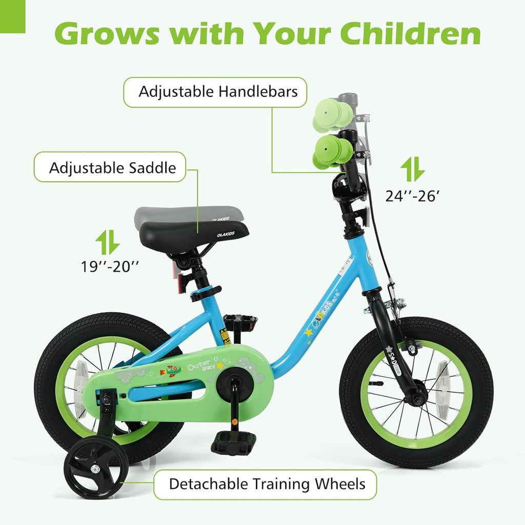 Grow with Children: This kids bicycle is equipped with detachable training wheels to assist beginner riders. The height of the handlebars and saddle can be adjusted according to the child's growth needs, ensuring a proper riding posture and comfort