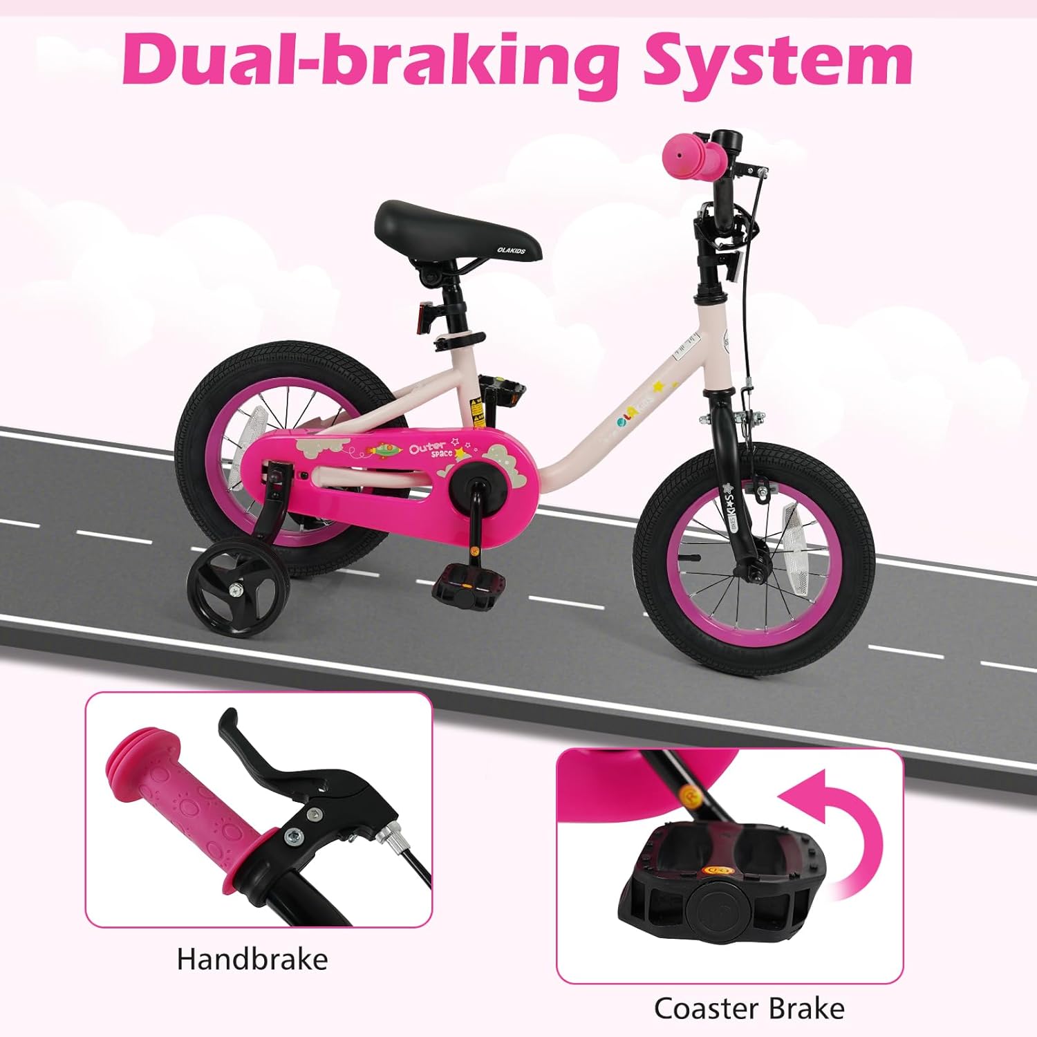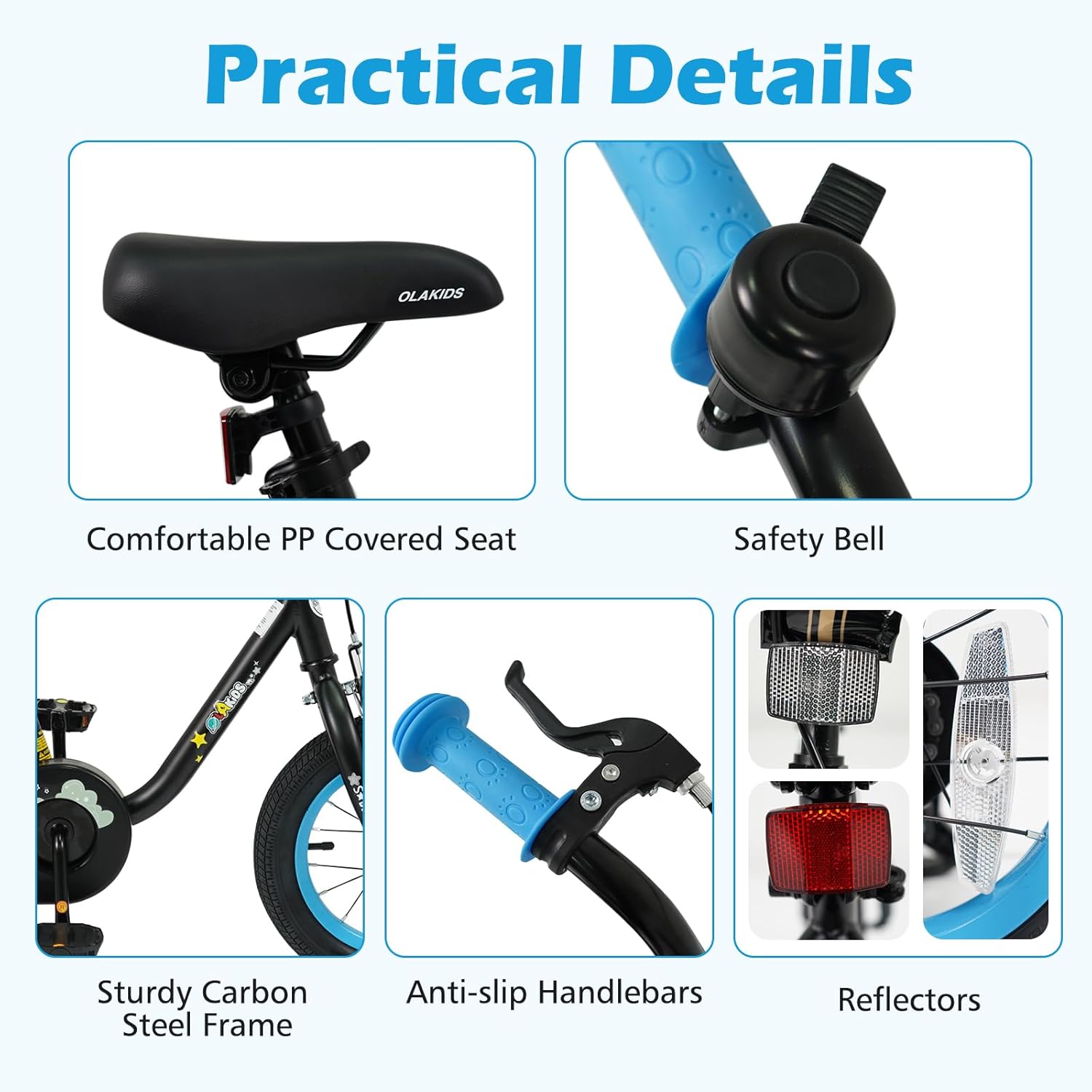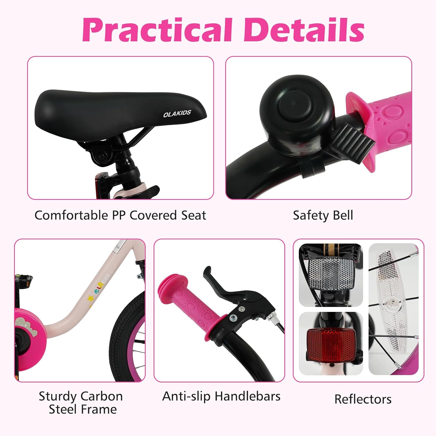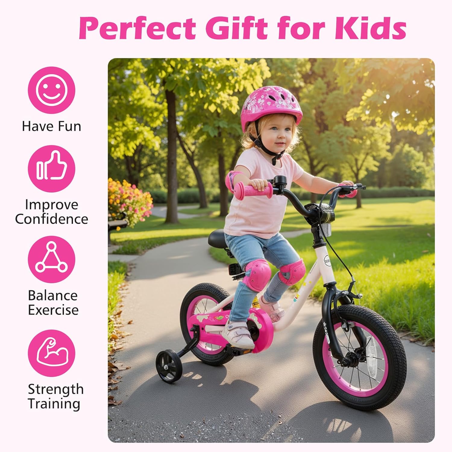 Premium & Sturdy Materials: Constructed with high-quality carbon steel material, this bike with training wheels can frequent daily use. The kids bike is equipped with a comfortable foamed PP seat and TRP anti-slip training wheels, ensuring children have a pleasant riding experience. The wide pneumatic rubber tires can handle various terrains
