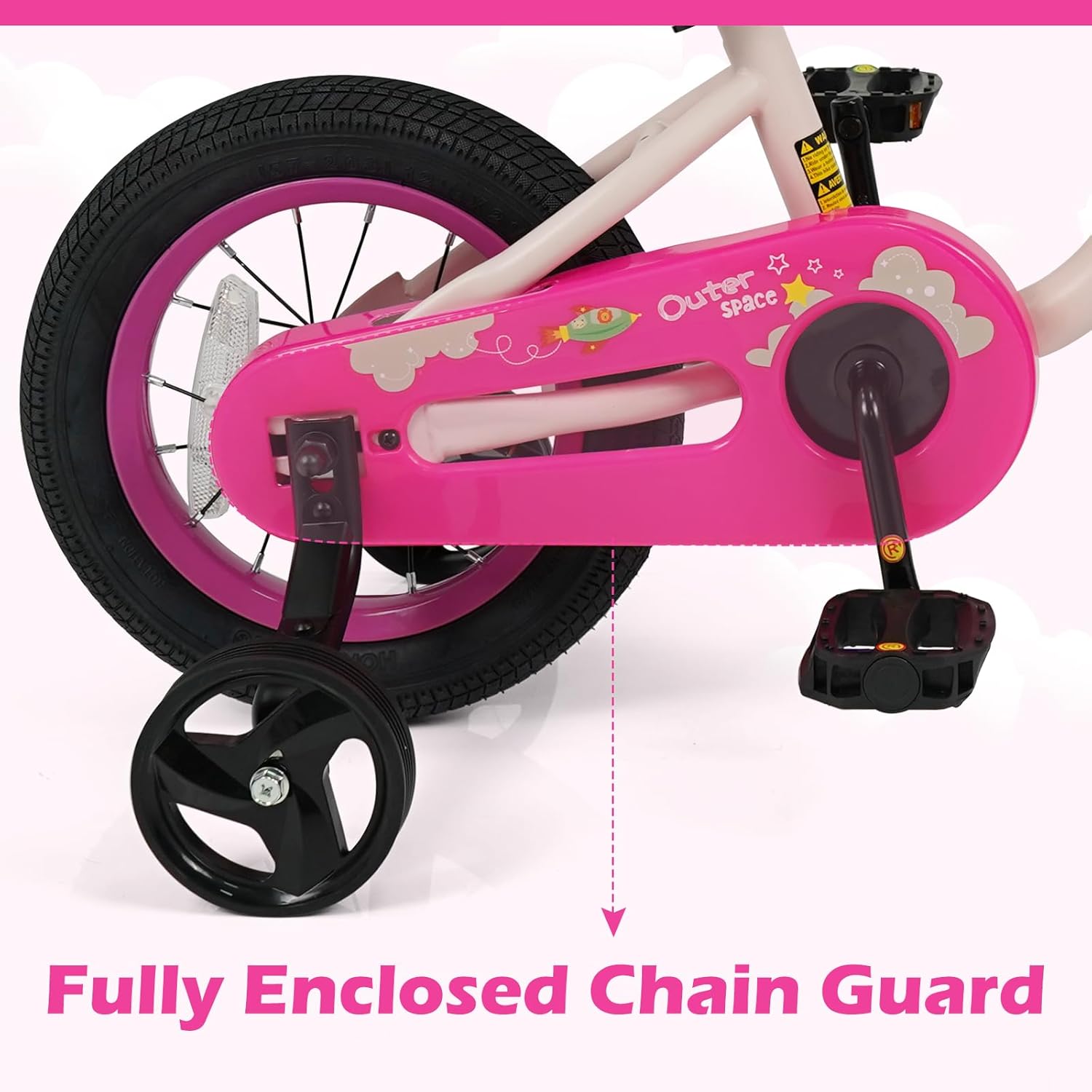 Multiple Safety Details: This toddler bike is equipped with handbrake and rear coaster brake, which are easy to operate. The enclosed chain guard can prevent children from getting accidental hurt. The reflectors installed at four positions and the safety bell can warn pedestrians around