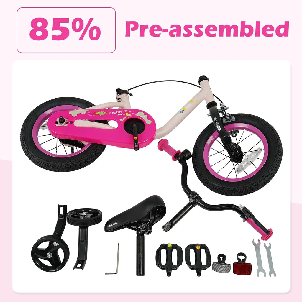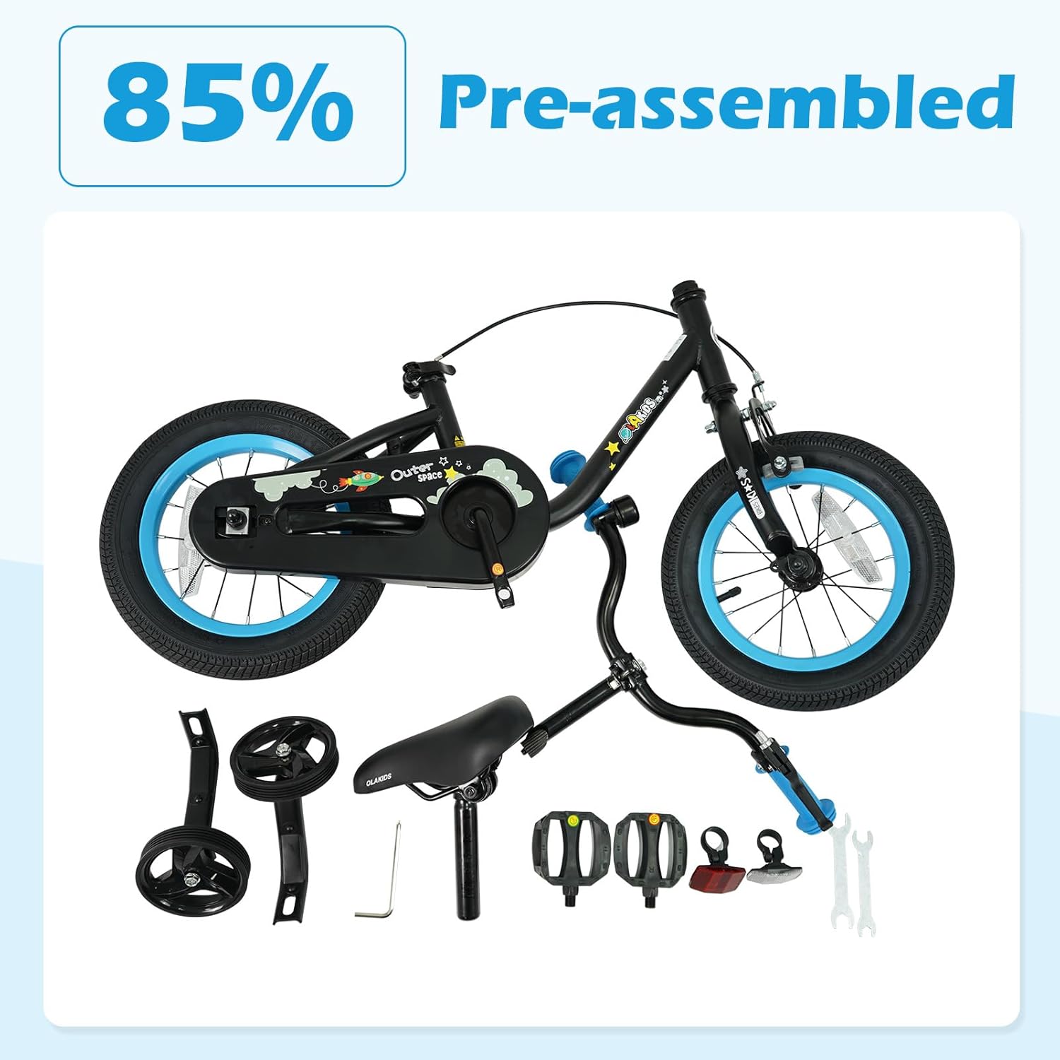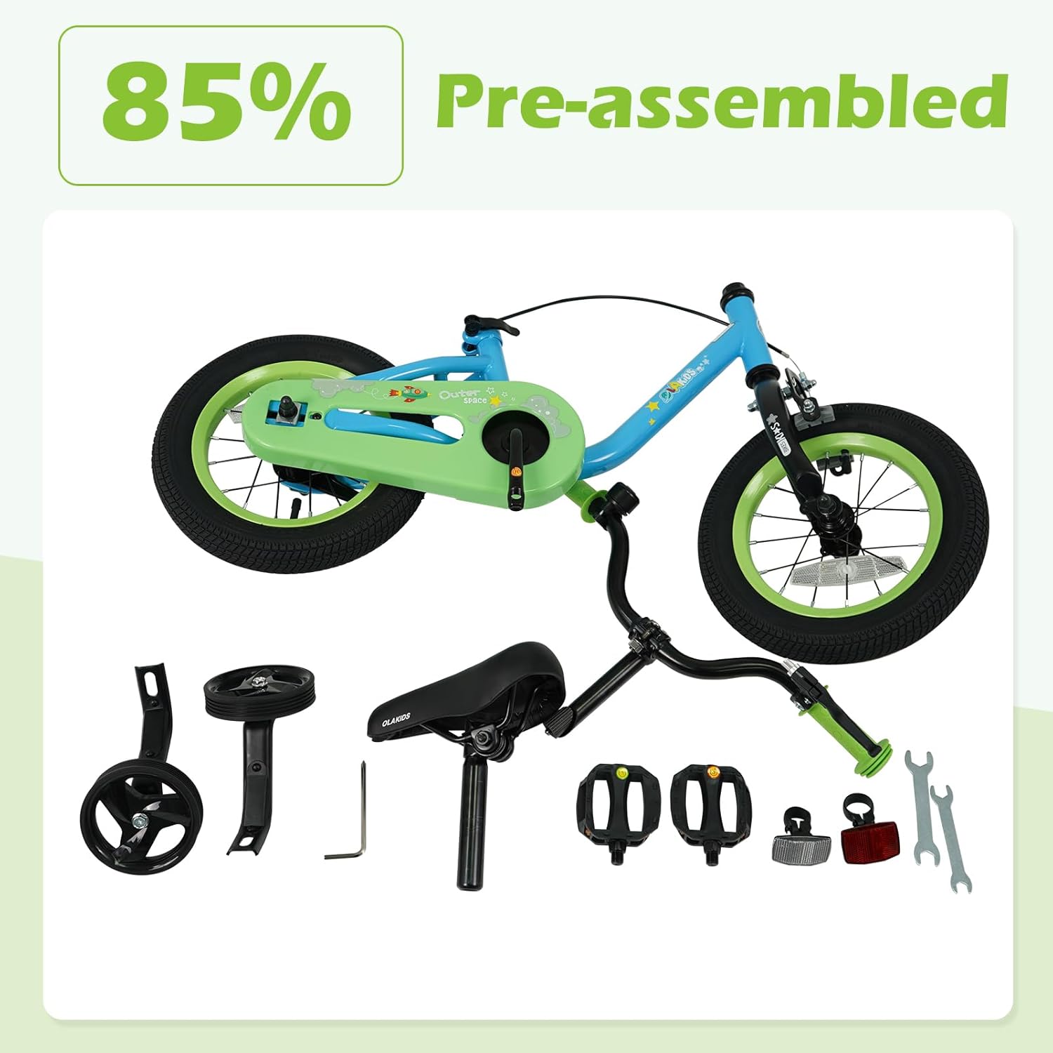 85% Pre-installed for Assembly: The kids bicycles has been 85% assembled in the box. A detailed instruction and basic assembly tools are included in the package. The installation is quick and easy, saving your time and effort