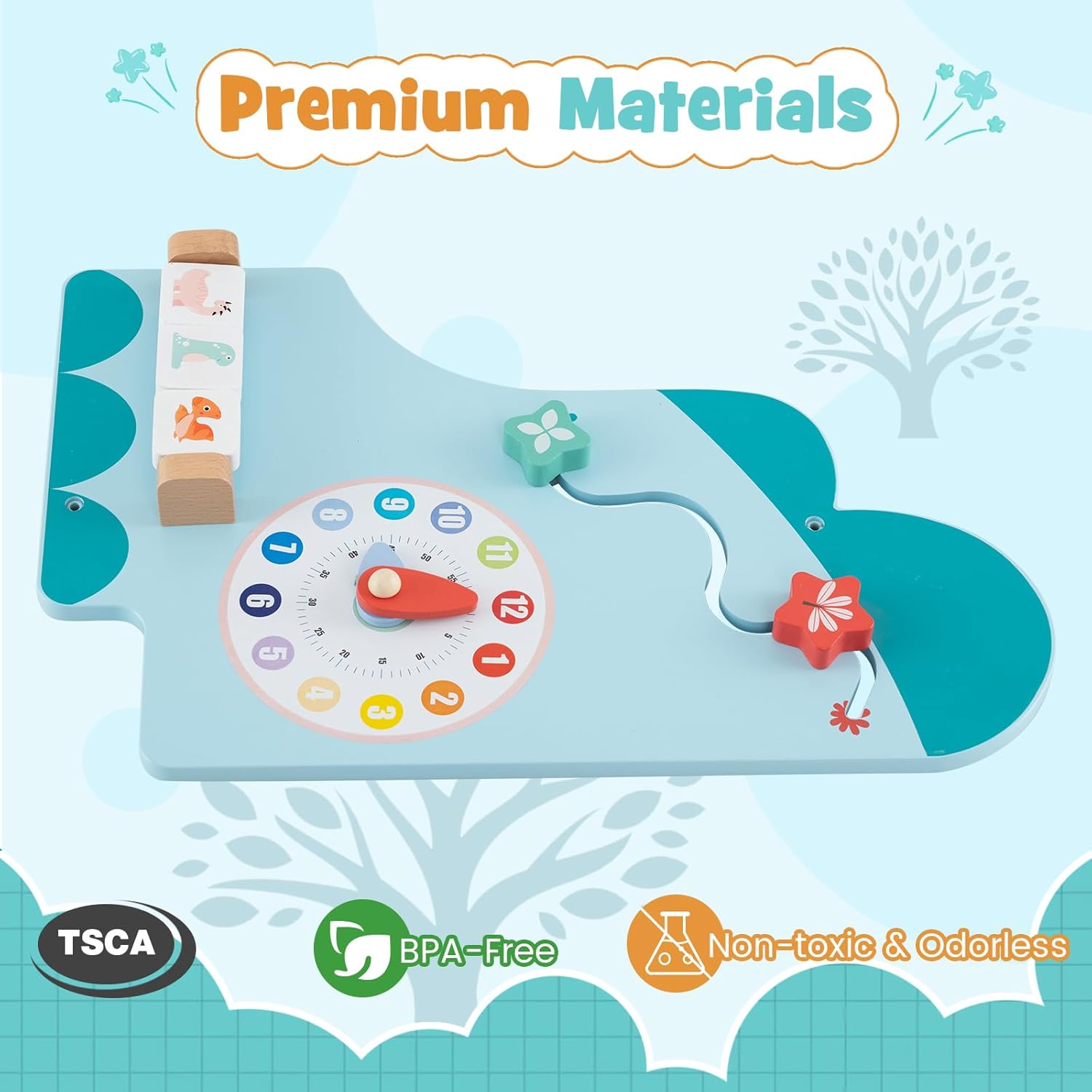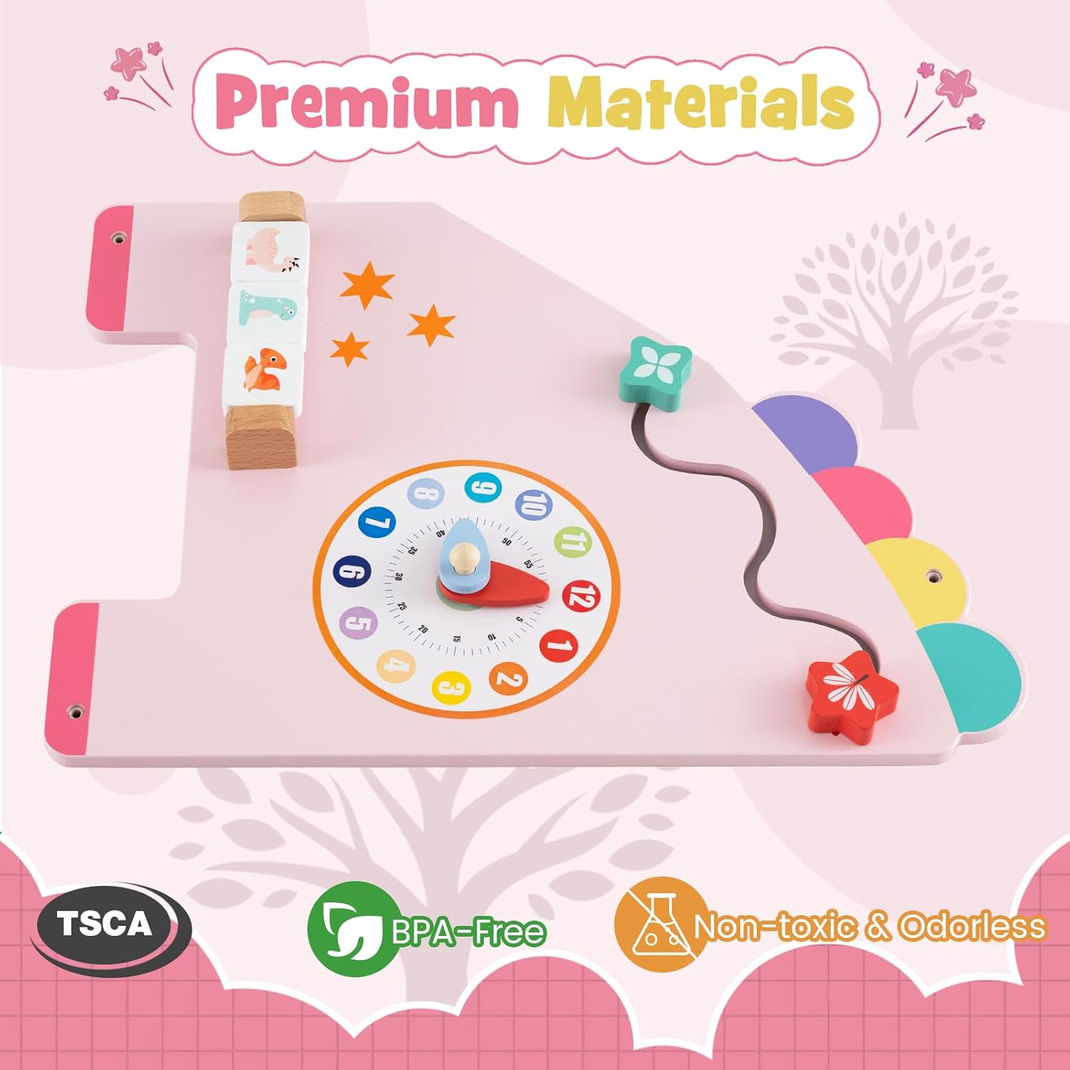 Premium Materials: This children wall-mounted toy is made of high-quality wood material and has passed the authoritative TSCA certification. The surface is painted with water-based paint, which is non-toxic, odorless and free of BPA. It is also very pet-friendly