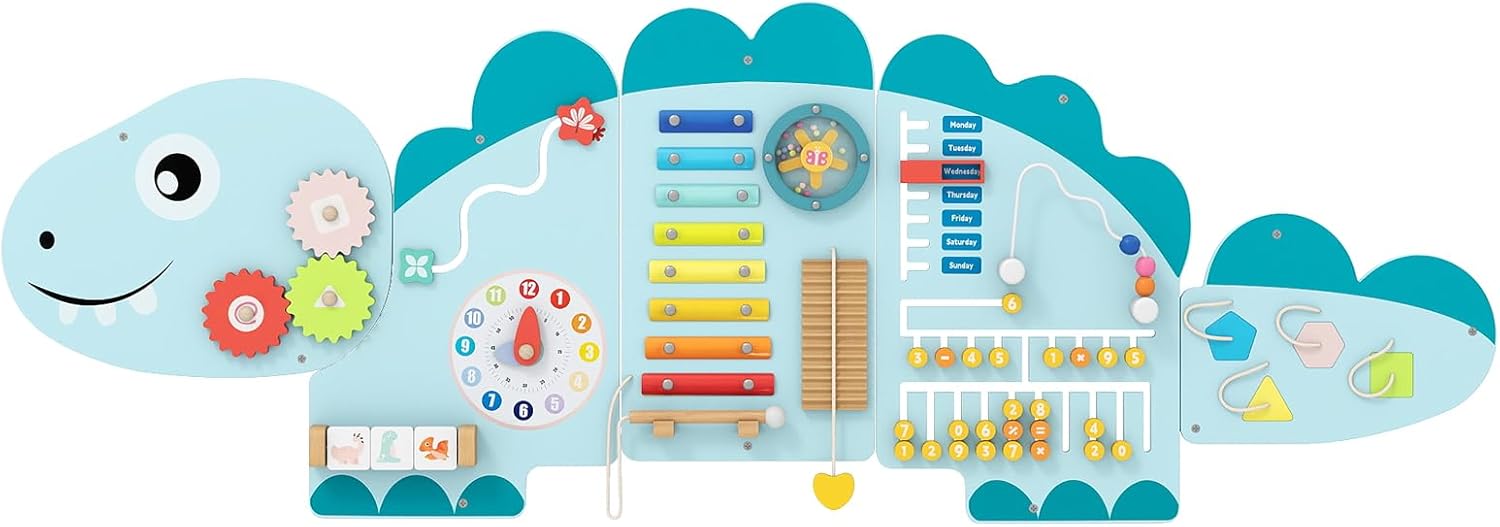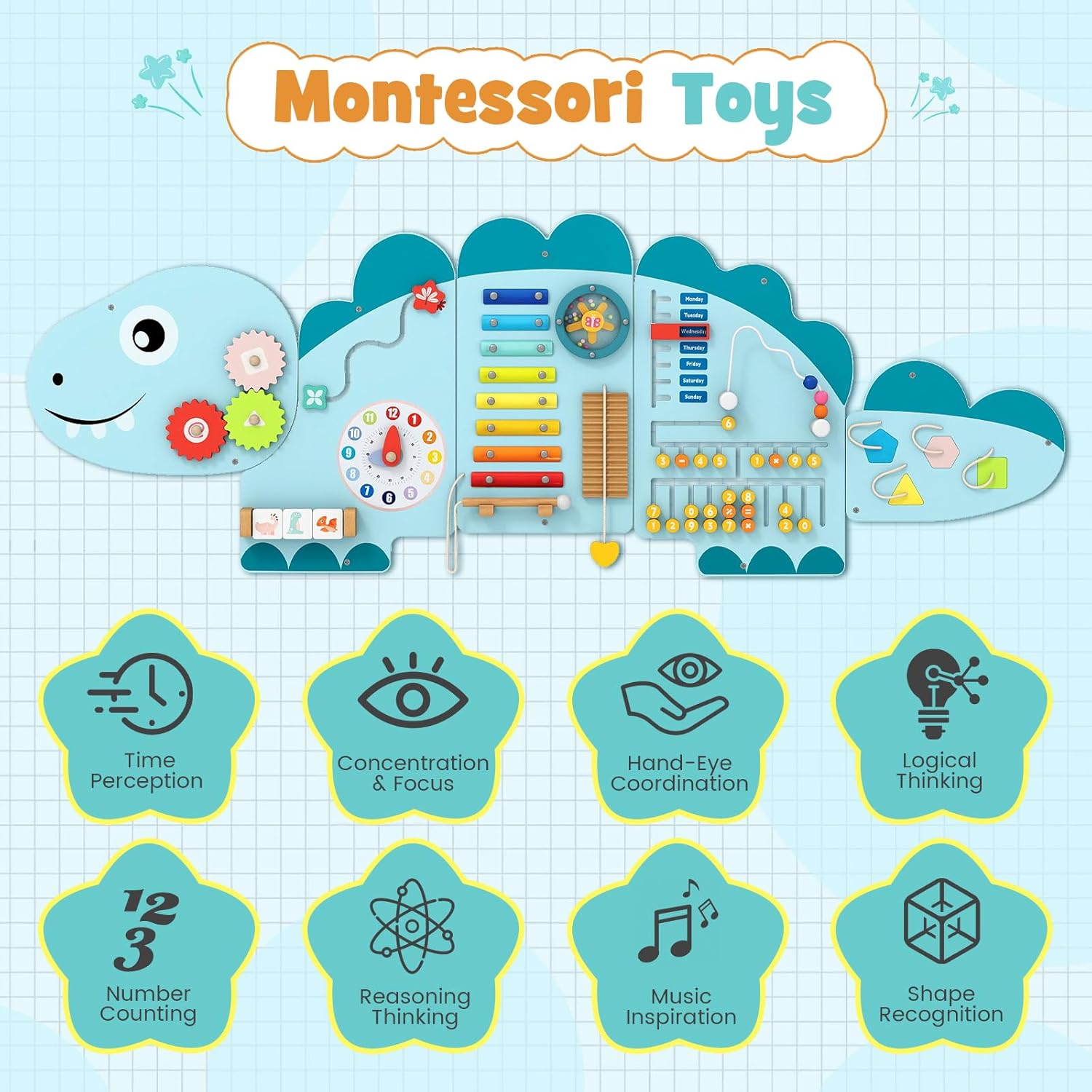 Montessori Toys: This wall activity board aids children's musical inspiration, exercises their number counting, shape recognition, time perception and concentration. It reduces screen time and promotes all-round development
