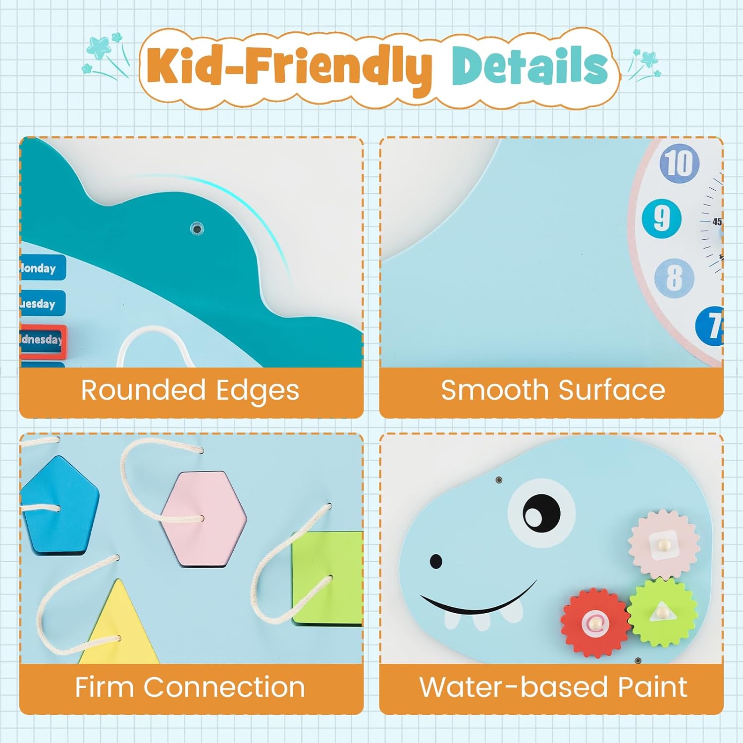 Kid-Friendly Details: The surface of the busy board for toddlers is smooth with no burrs, and all edges are rounded to effectively prevent children from getting scratched. The components are firmly connected with no small parts that easily fall off